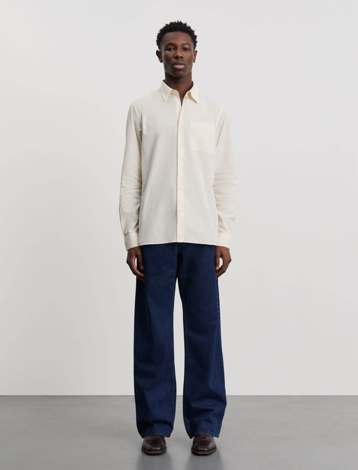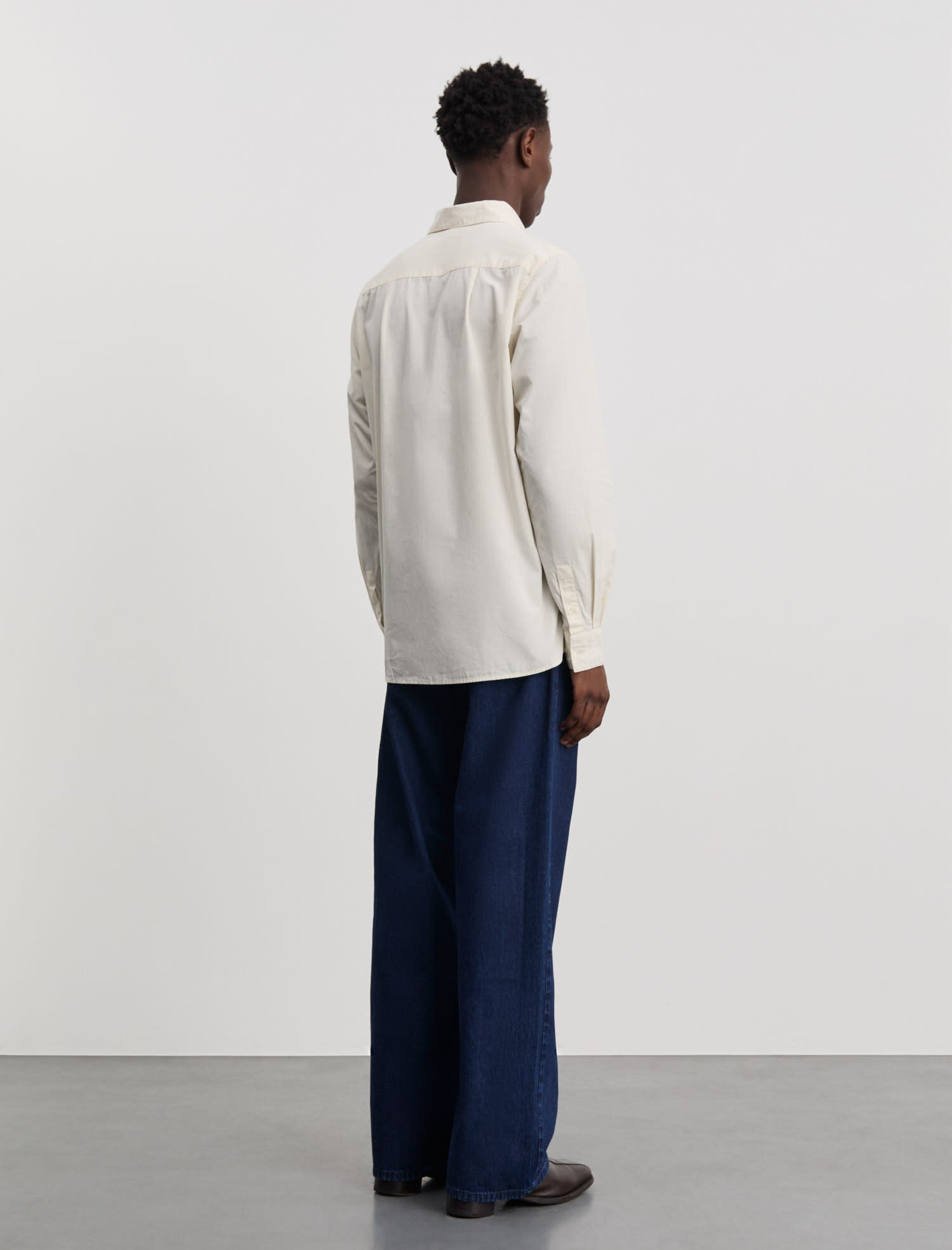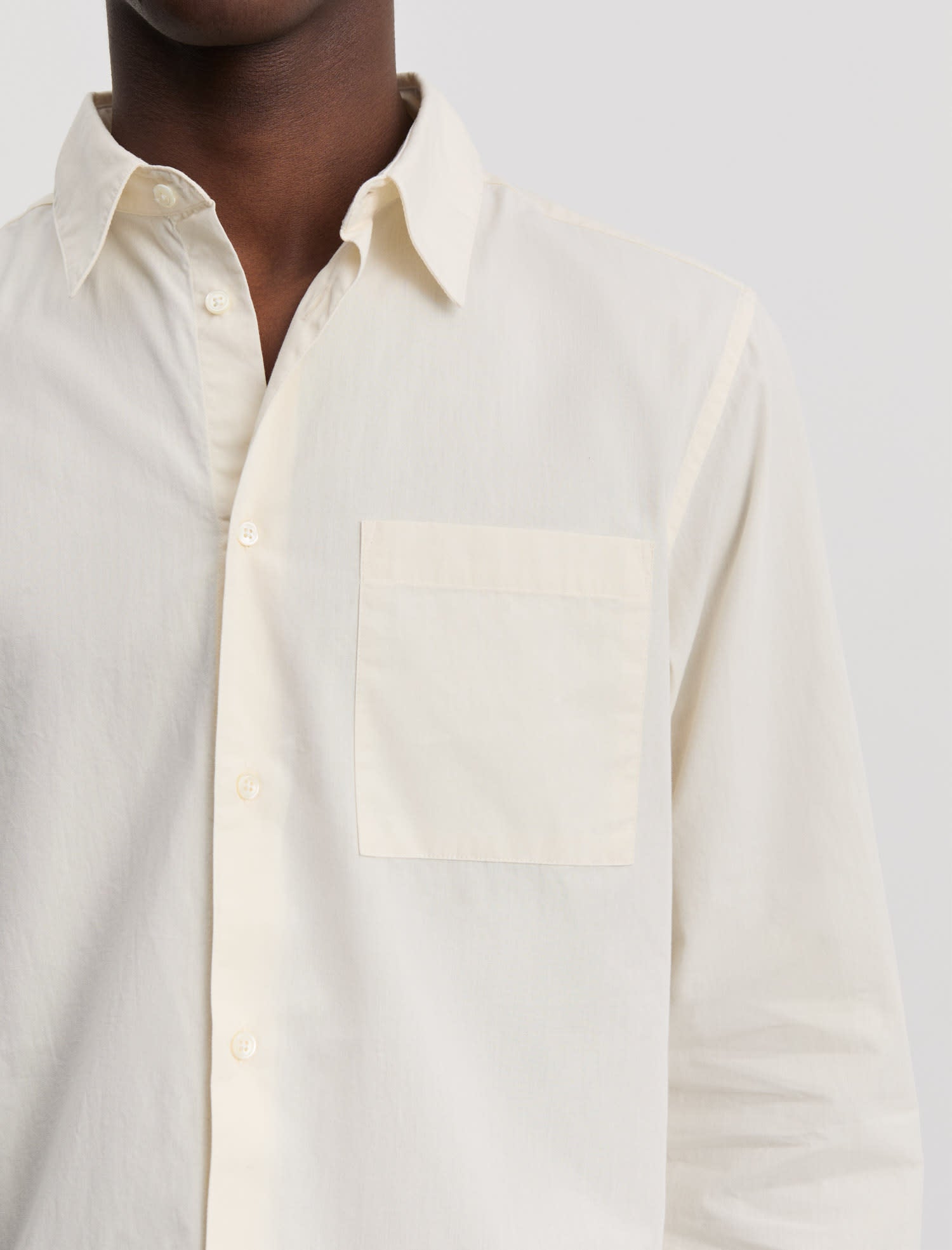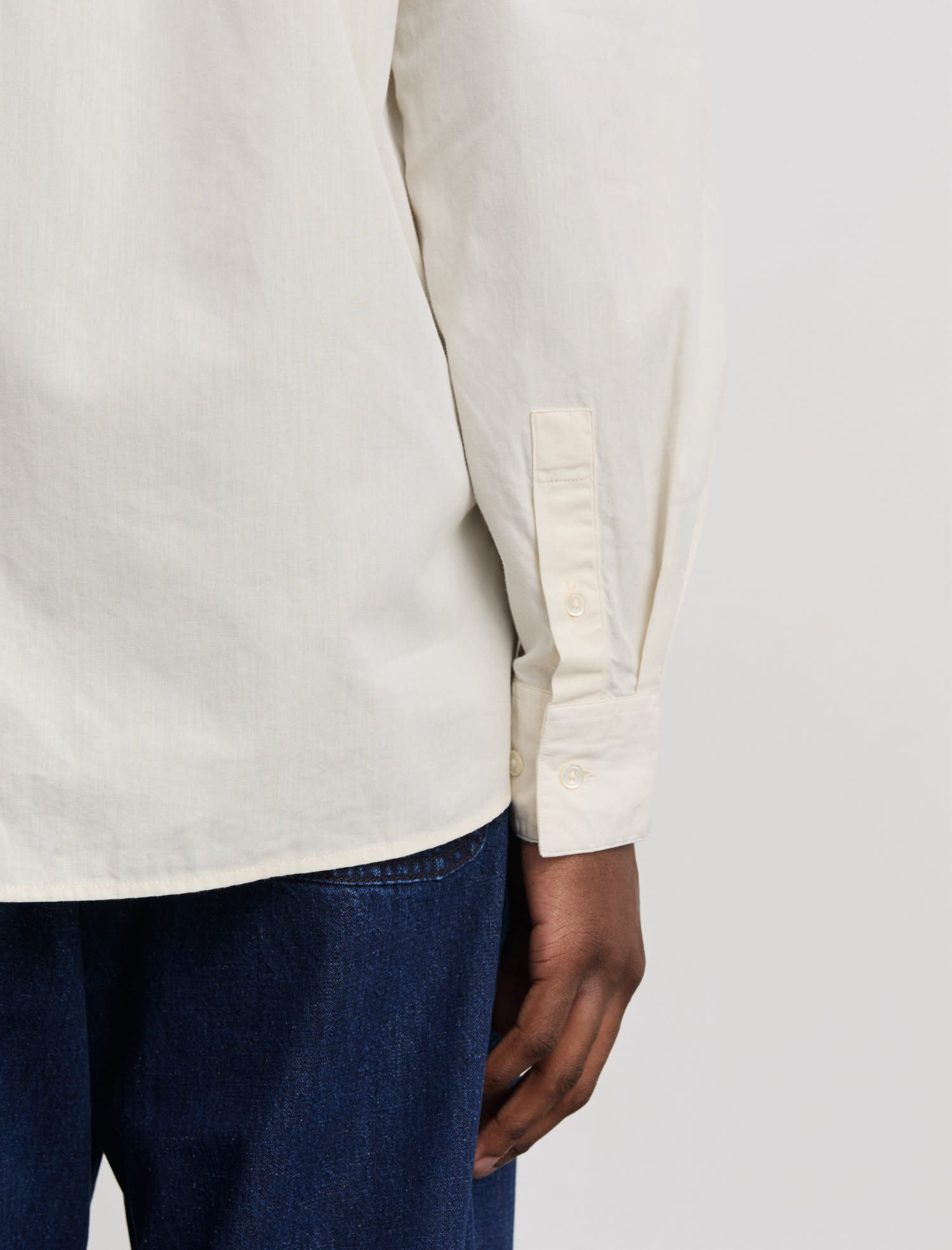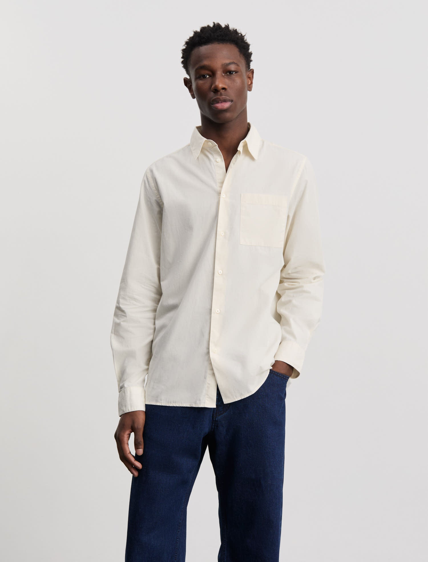 フォーマルな印象のポプリンシャツを、特別な日の装いから日常へ。オフィスはもちろん、プールパーティーやその合間の自転車移動まで、シーンを選ばず活躍します。GOTS認証のオーガニックコットンポプリンを使用し、エレガントな素材感とカジュアルな着こなしを両立させるレギュラーフィットに仕立てました。タックイン、ルーズに羽織る、ボタンを留める、開ける——自由なスタイルで楽しめます。