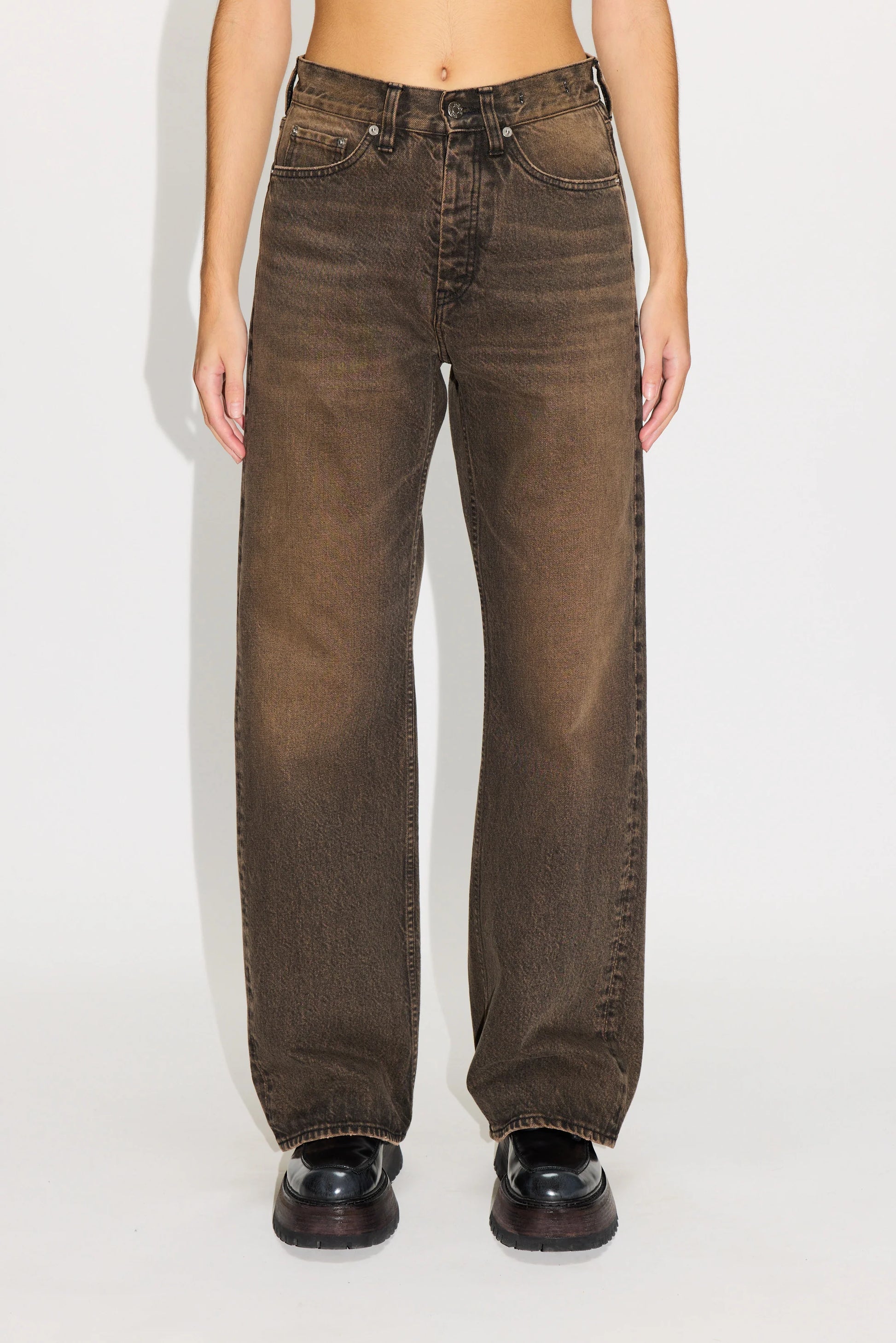 HOPE定番のCRISS JEANSは、ワイドレッグシルエットの5ポケットデニム。