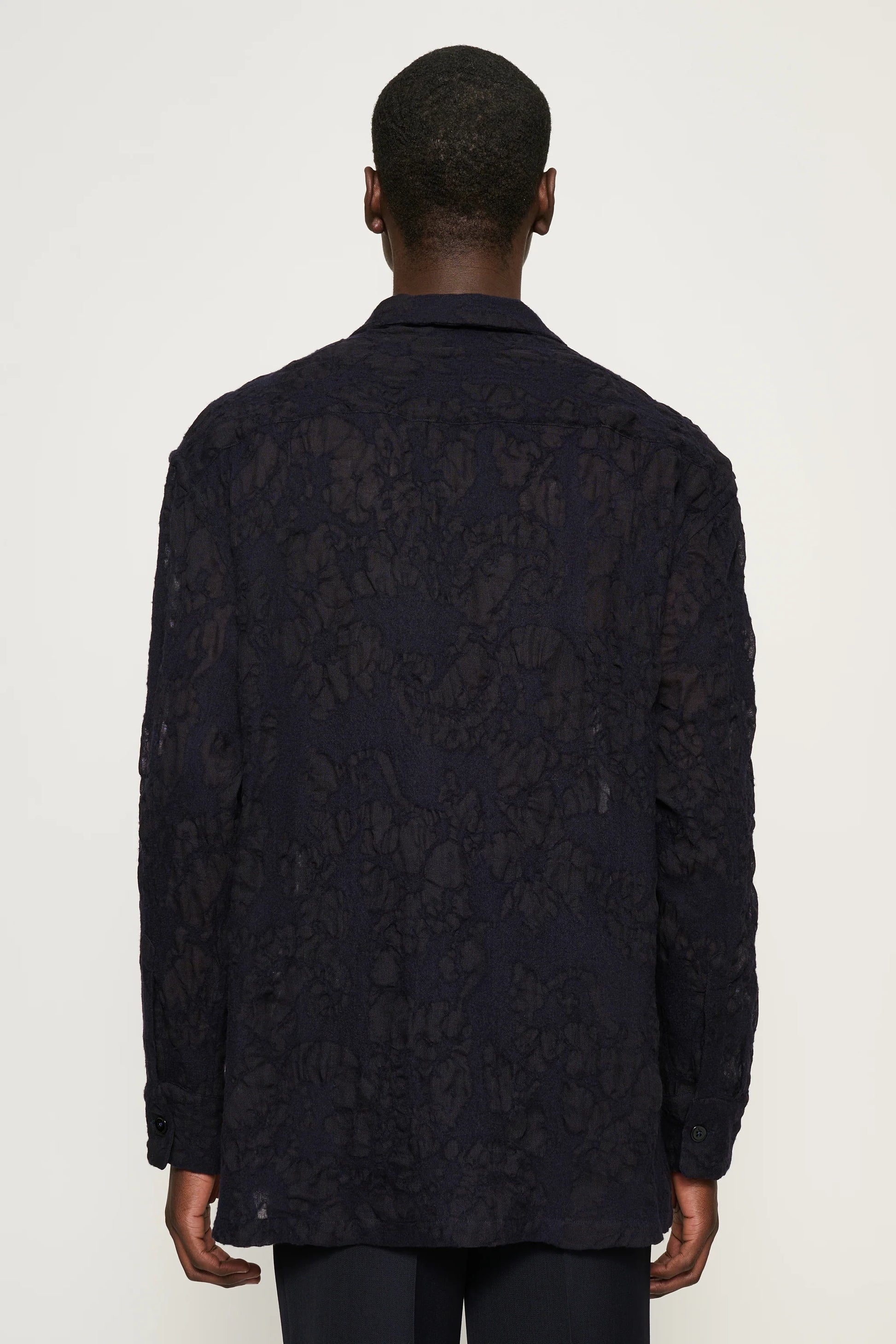 レギュラーフィットの定番シルエットに、遊び心あるバーンアウト生地を採用。キャンプカラーを開いてリラックスしたスタイルにも、ボタンを閉めて端正に着こなすことも可能です。ストレートヘムとサイドベントが、自然な動きと快適な着心地を提供します。