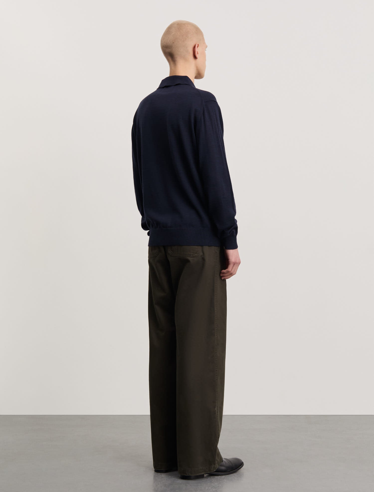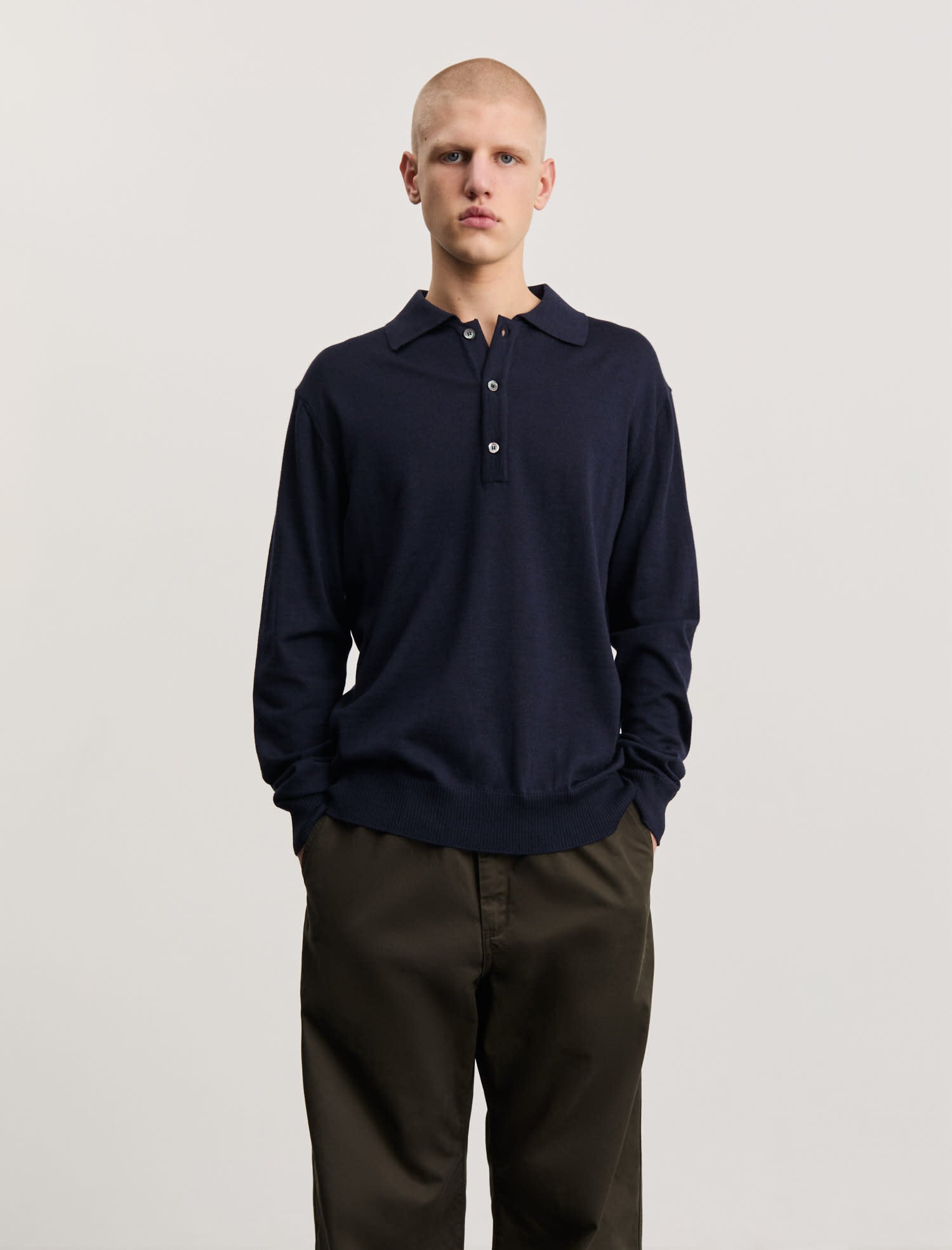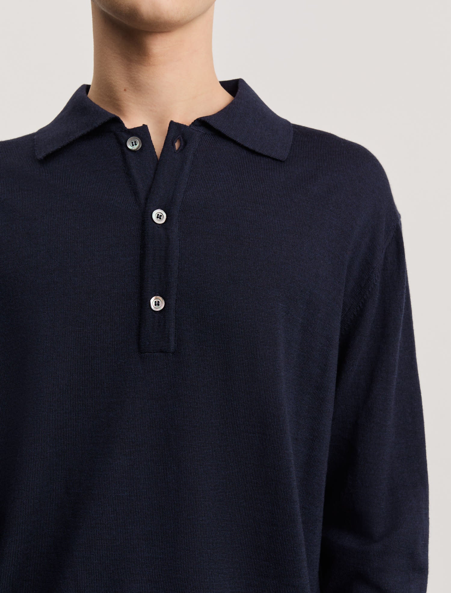 やわらかなオーガニックメリノウールを使用した長袖ポロシャツ。