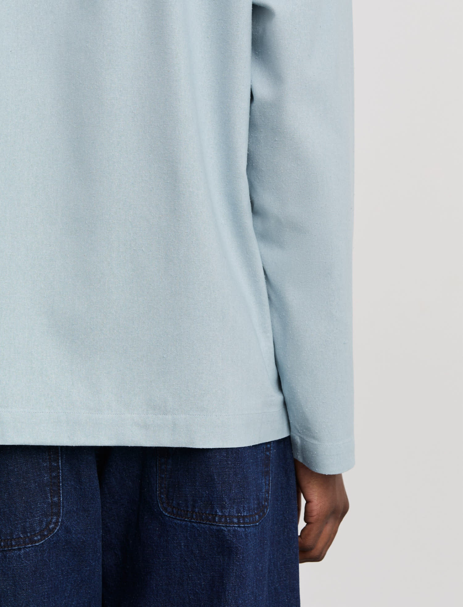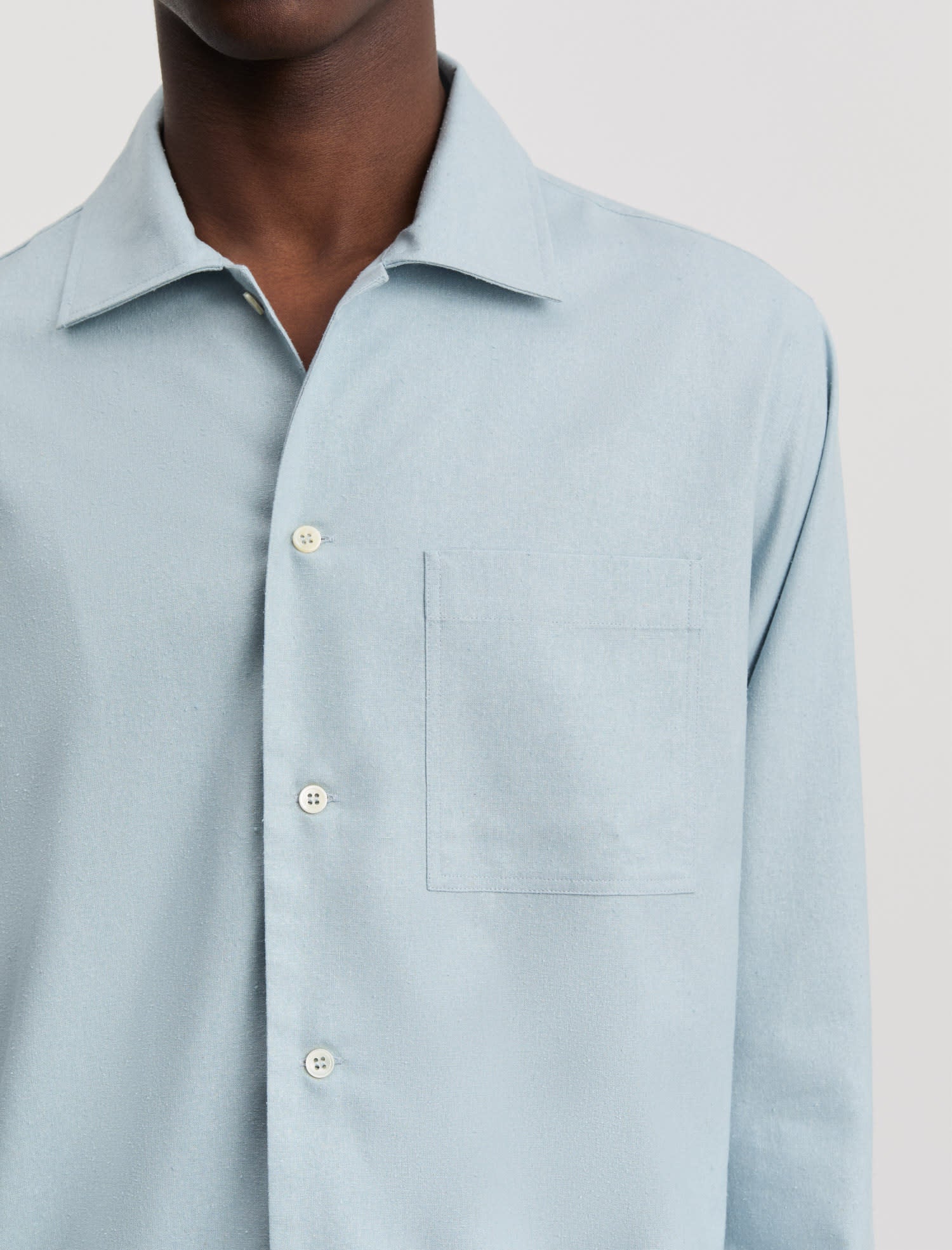 ヘミングウェイが愛したキューバの空気感と、日常に寄り添うリラックスフィットのシャツ。カフスにも襟にもボタンをつけず、あえてシンプルに仕上げました。柔らかな生絹(シルク)の素材感をそのまま楽しんでほしい——そんな想いを込めた一枚です。