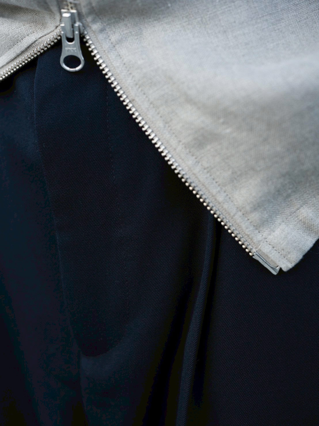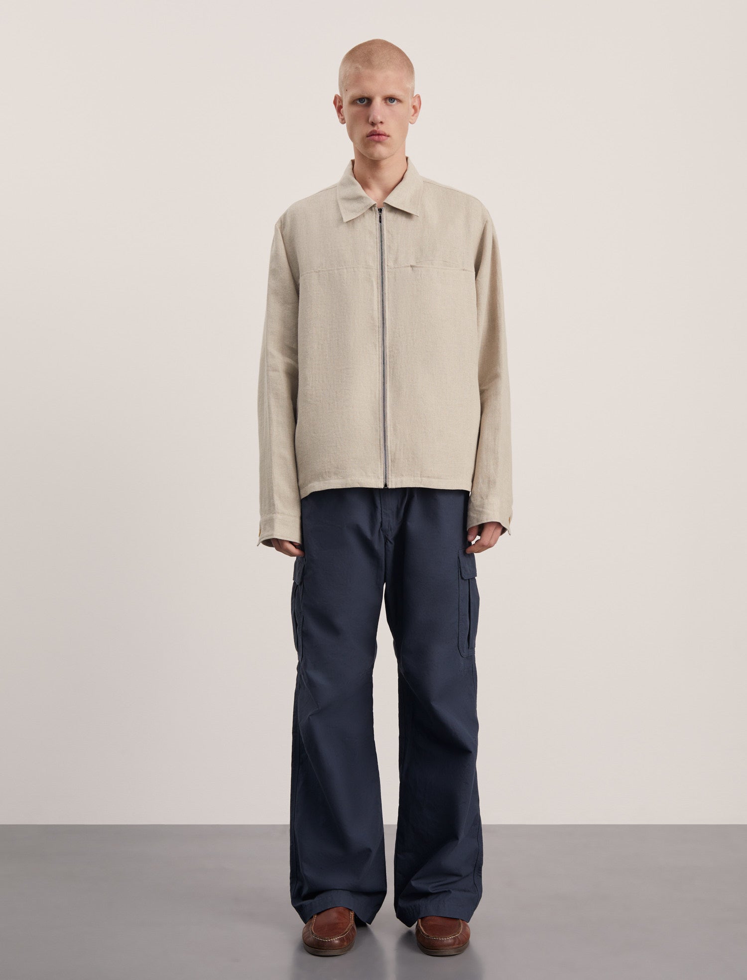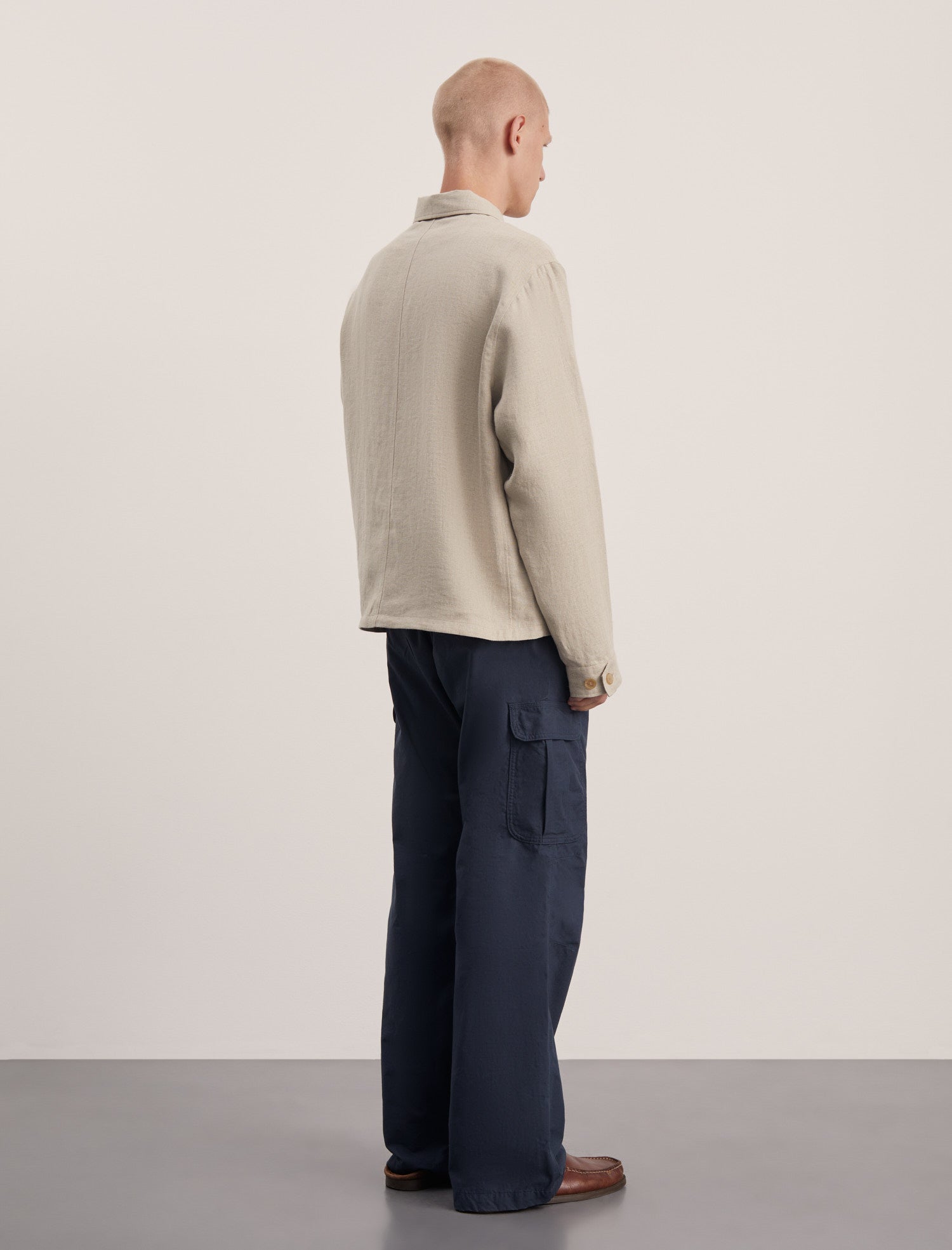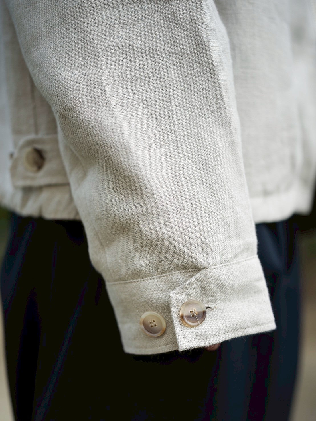 柔らかなリネン素材を使用し、風合い豊かなテクスチャーが魅力のクラブジャケット風オーバーシャツ。クラシックなスタイルをモダンにアレンジし、ややボクシーで短めの丈感が特徴です。両サイドにはさりげないシームポケット、胸元には隠しポケットを備え、すっきりとした機能的なデザインに仕上がっております。