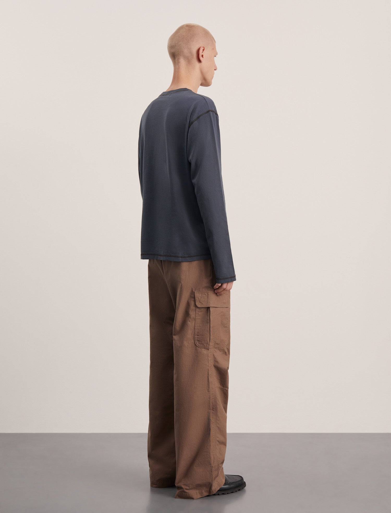 快適な着心地を追求した、長袖のオーガニックコットンジャージーTシャツ。柔らかな肌触りが特徴で、ネックラインと裾にはコントラストカラーのフラットロックステッチを施し、ひと味違うデザインに仕上げられています。