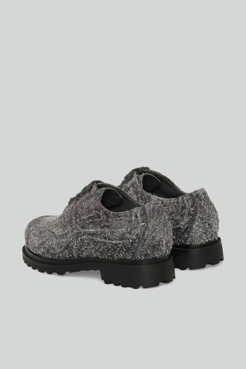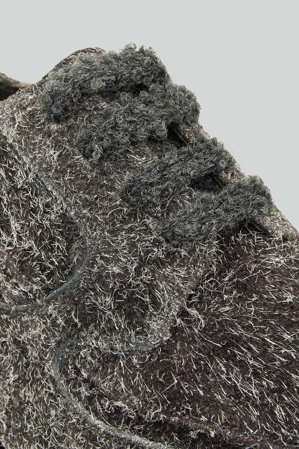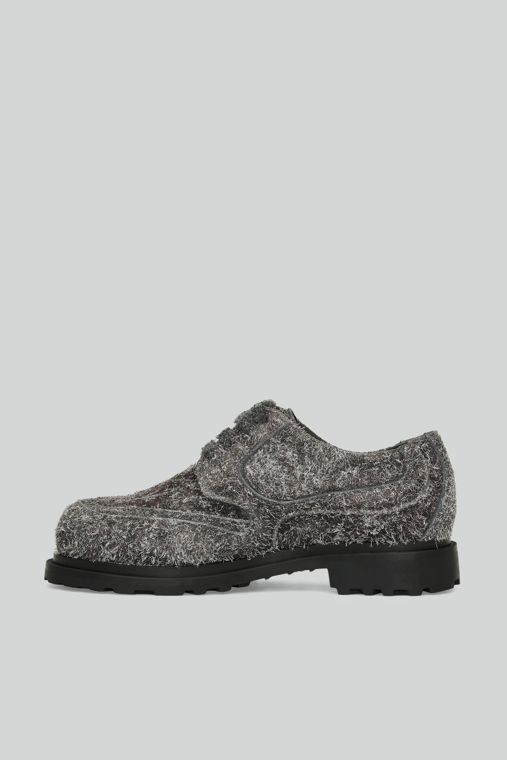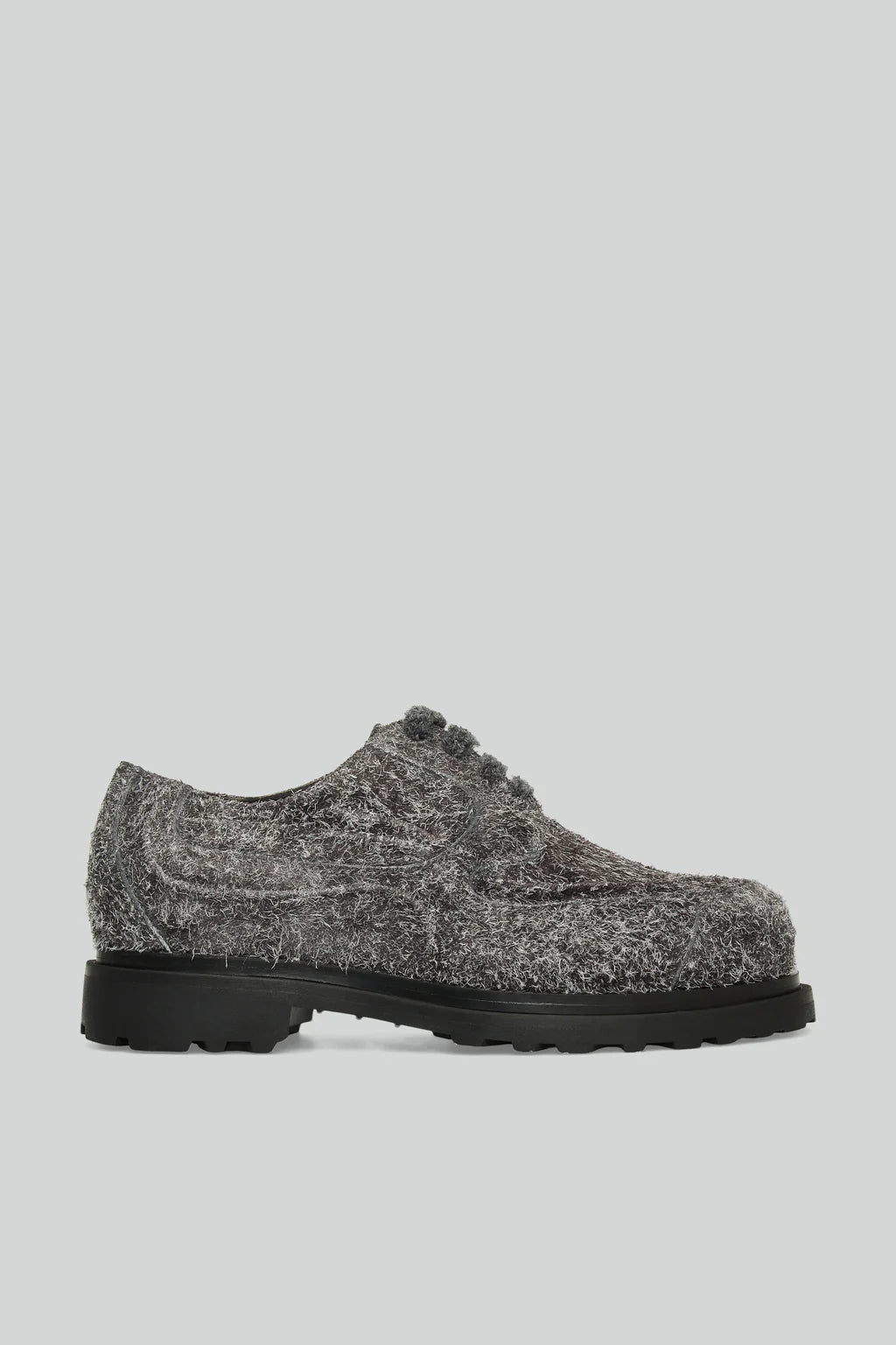 長毛の2トーンブラッシュドスエードで作られております。太めのシューレースと流れるようなシームディテールが特徴です。