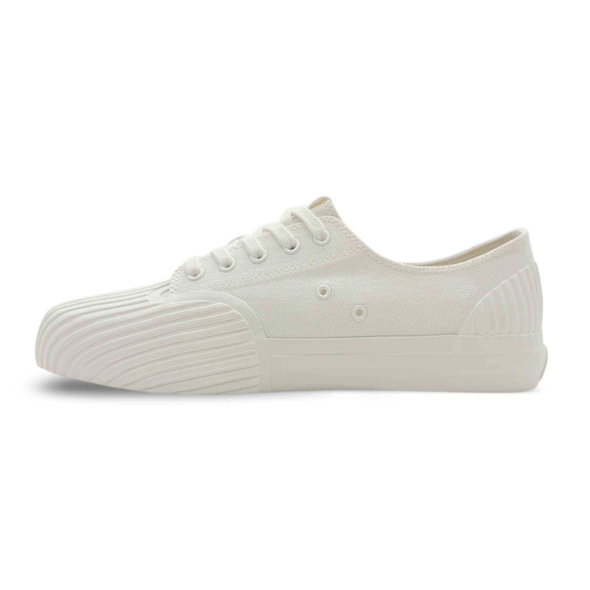 一見するとシンプルなこのスニーカーは、白いキャンバスが持つ無限の可能性を秘めており、どんなワードローブにも自然と溶け込むようデザインされています。素材には、環境に配慮したリサイクルコットンと柔軟なリサイクルラバーを使用し、快適性と実用性を両立させました。