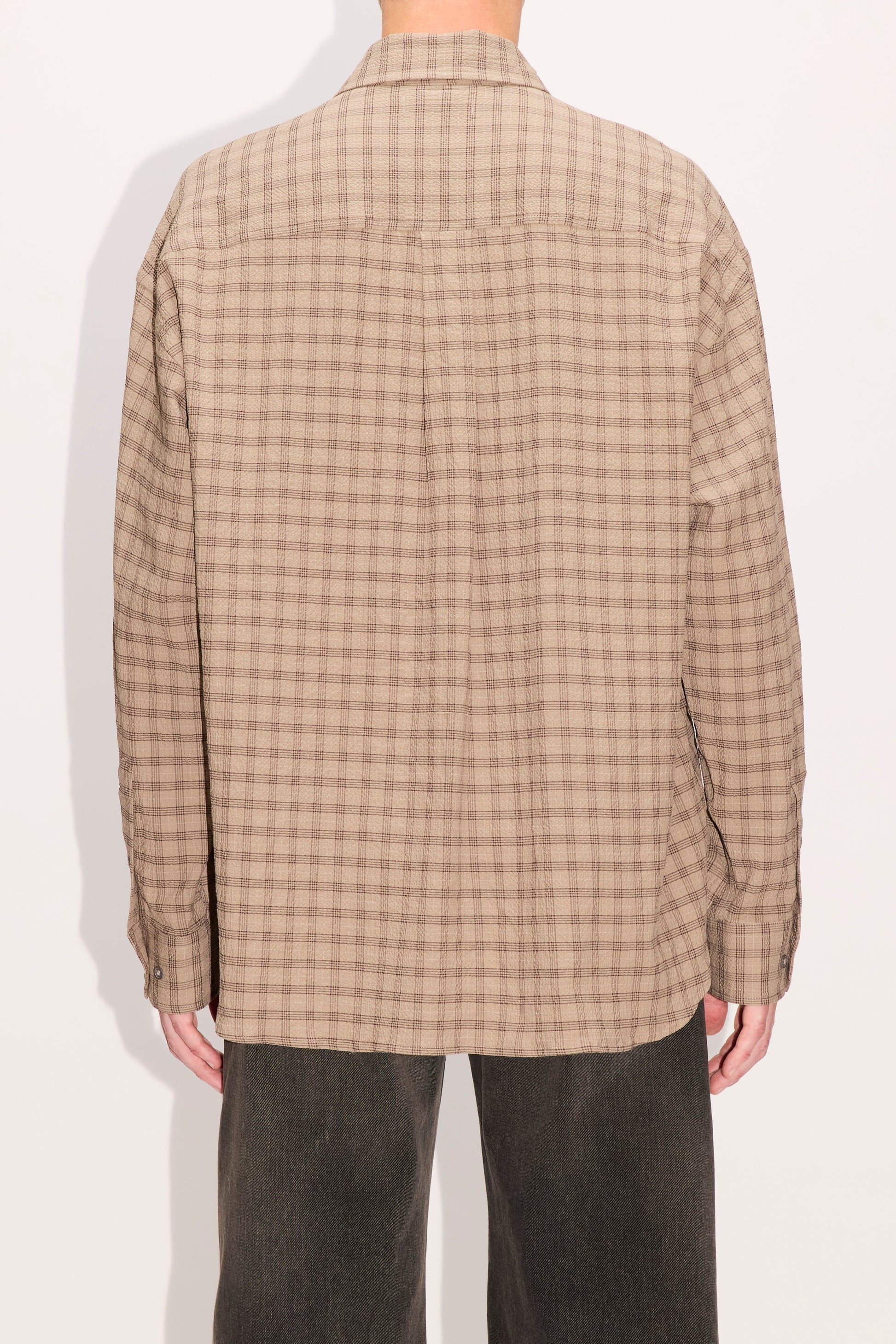 Room Shirtは、ドロップショルダーとカーブした裾が特徴の、オーバーサイズでボックスシルエットのシャツです。