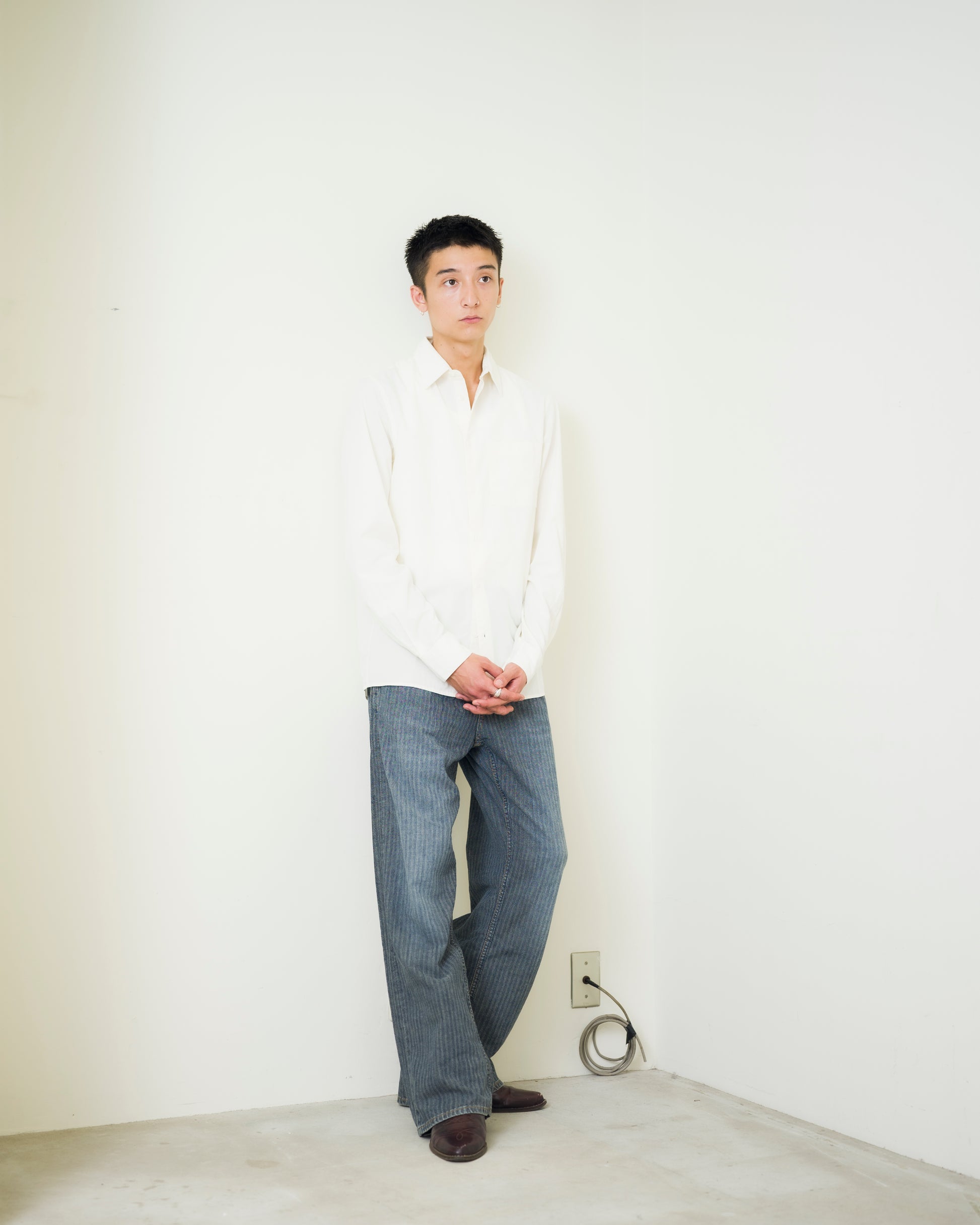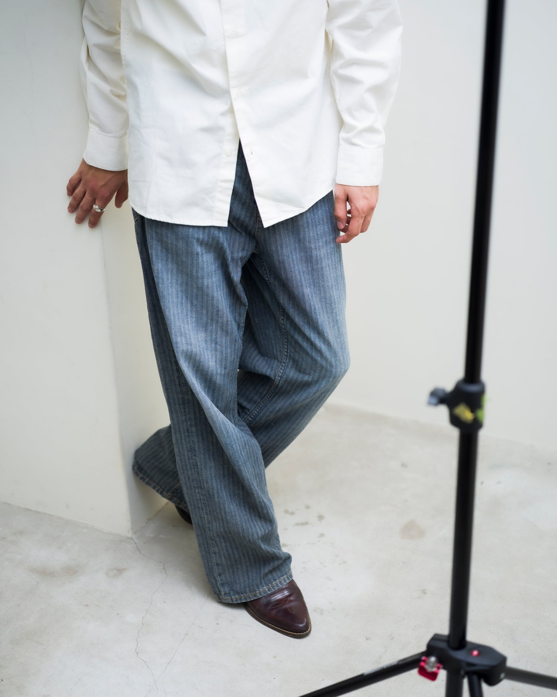 HOPE定番のCRISS JEANSは、ワイドレッグシルエットの5ポケットデニム。