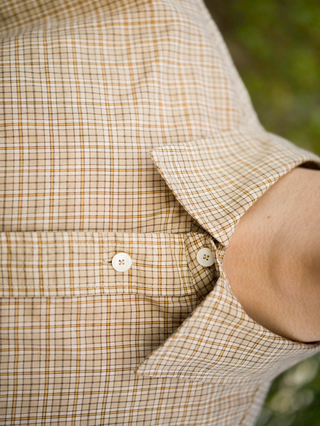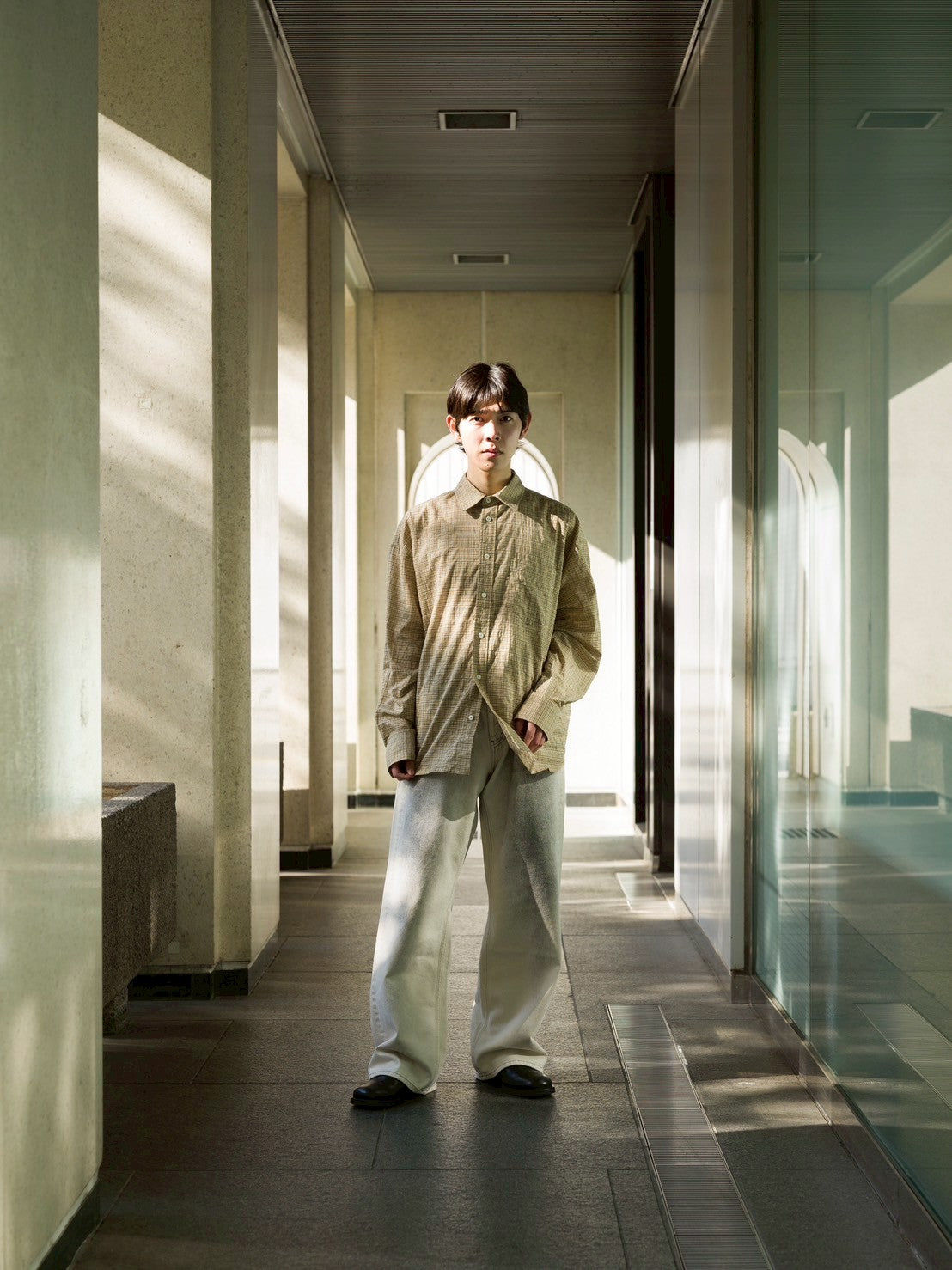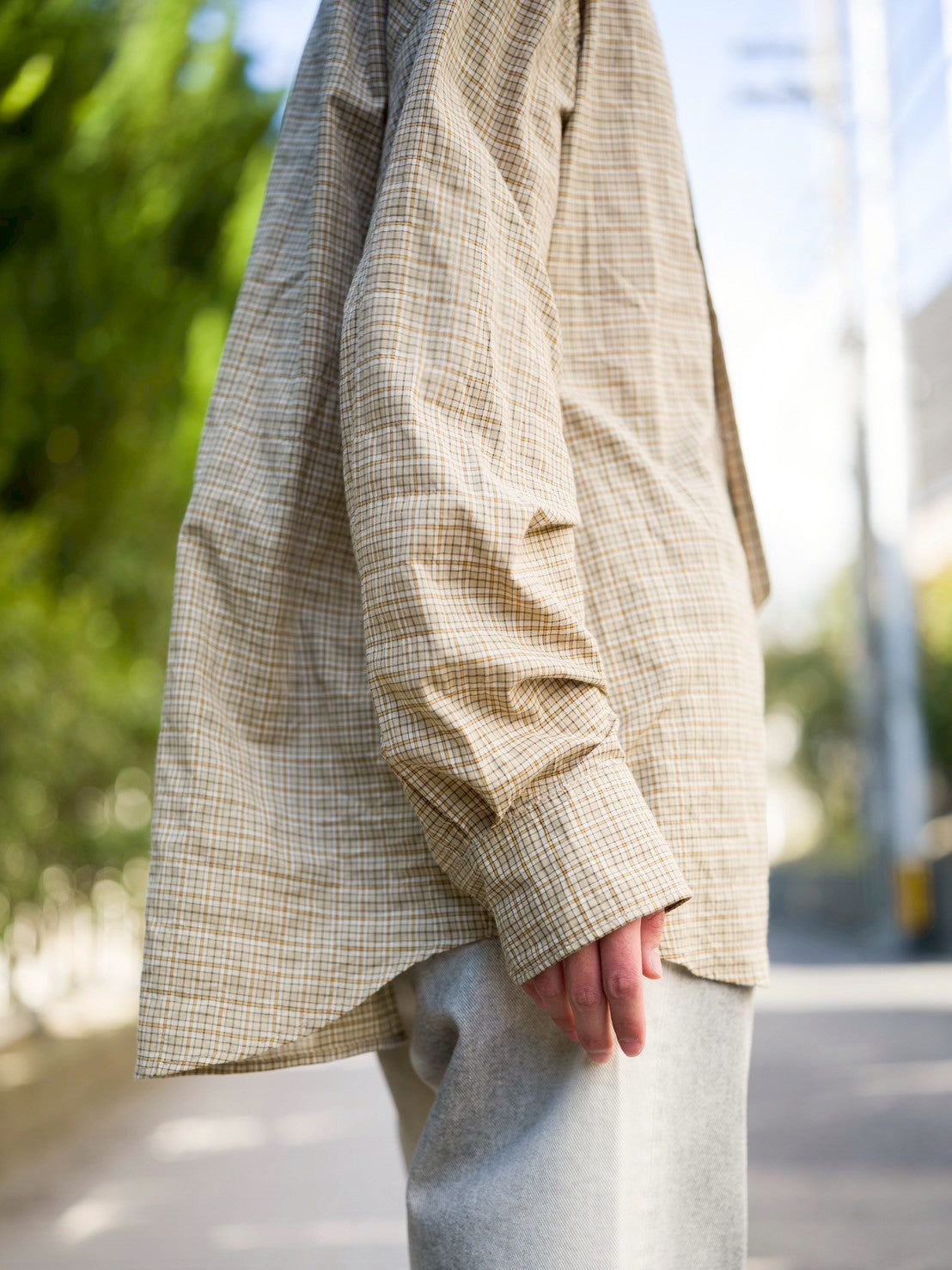 ドロップショルダーとボリュームのある袖が特徴のワイドフィットシャツです。貝ボタン、胸ポケット、調節可能なカフスなど、細部までこだわりが感じられます。軽やかなコットンボイル素材を使用。