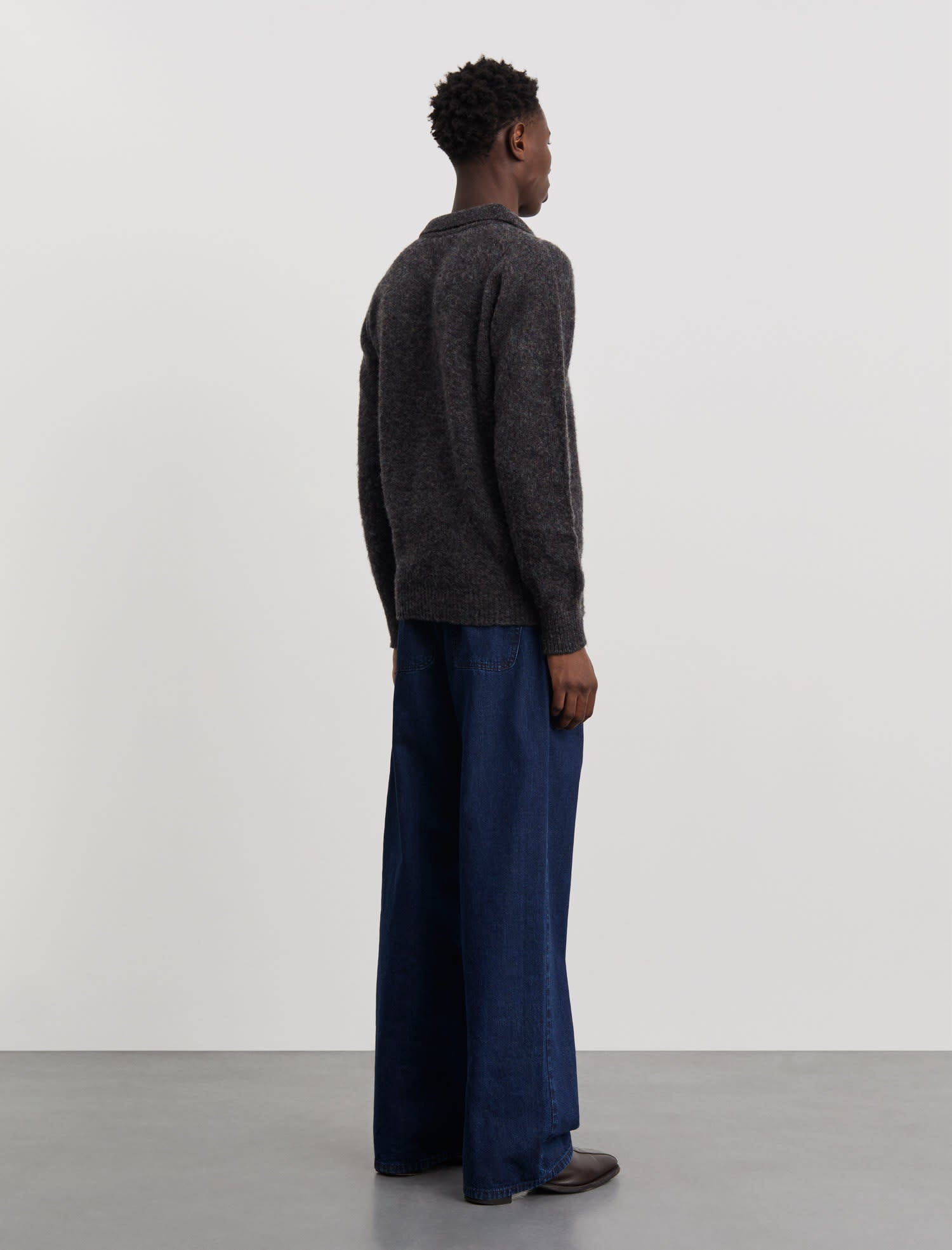スコットランドの熟練したニッターによって丁寧に編み立てられたラムウール製で、起毛加工による柔らかく毛足の長い質感が特徴。