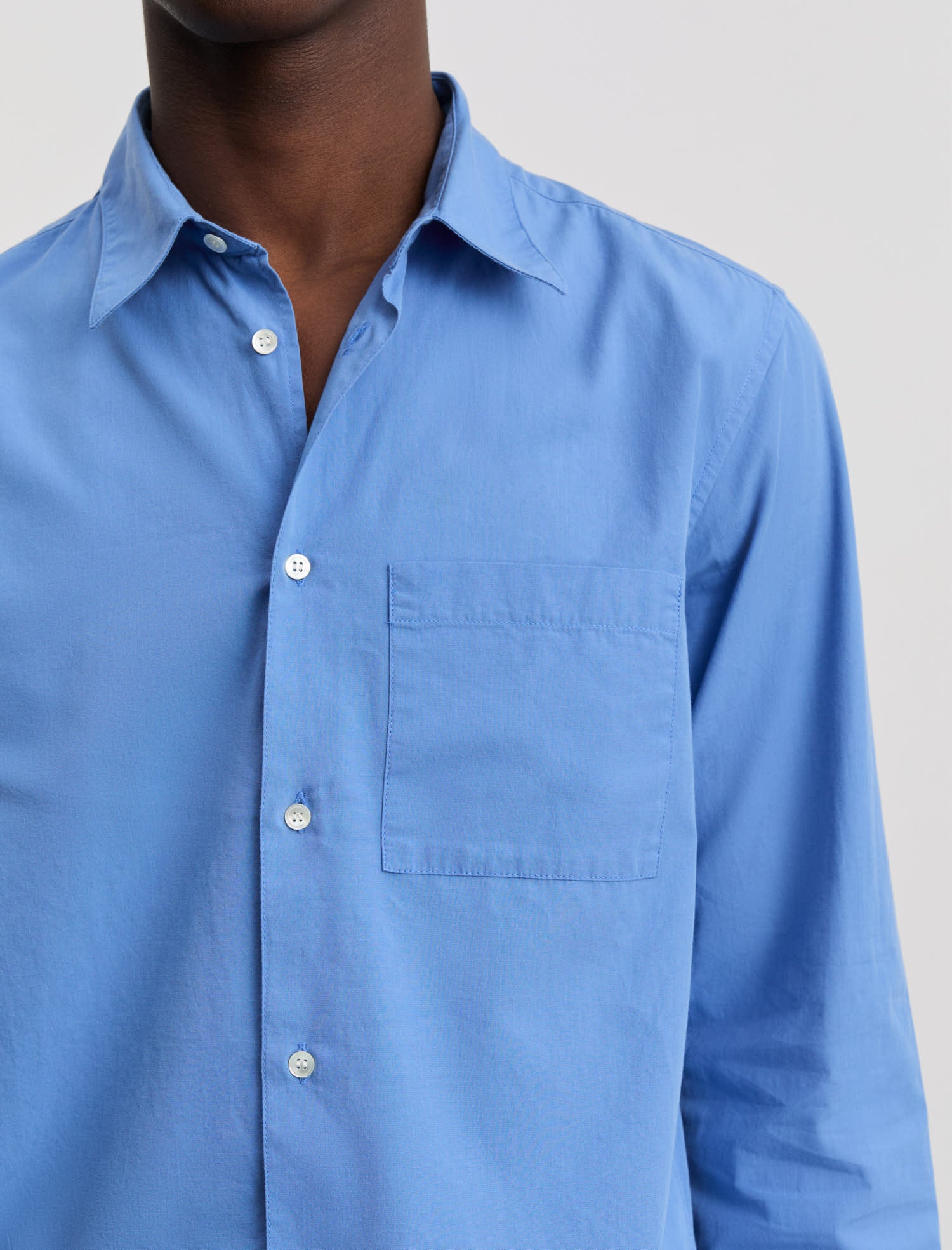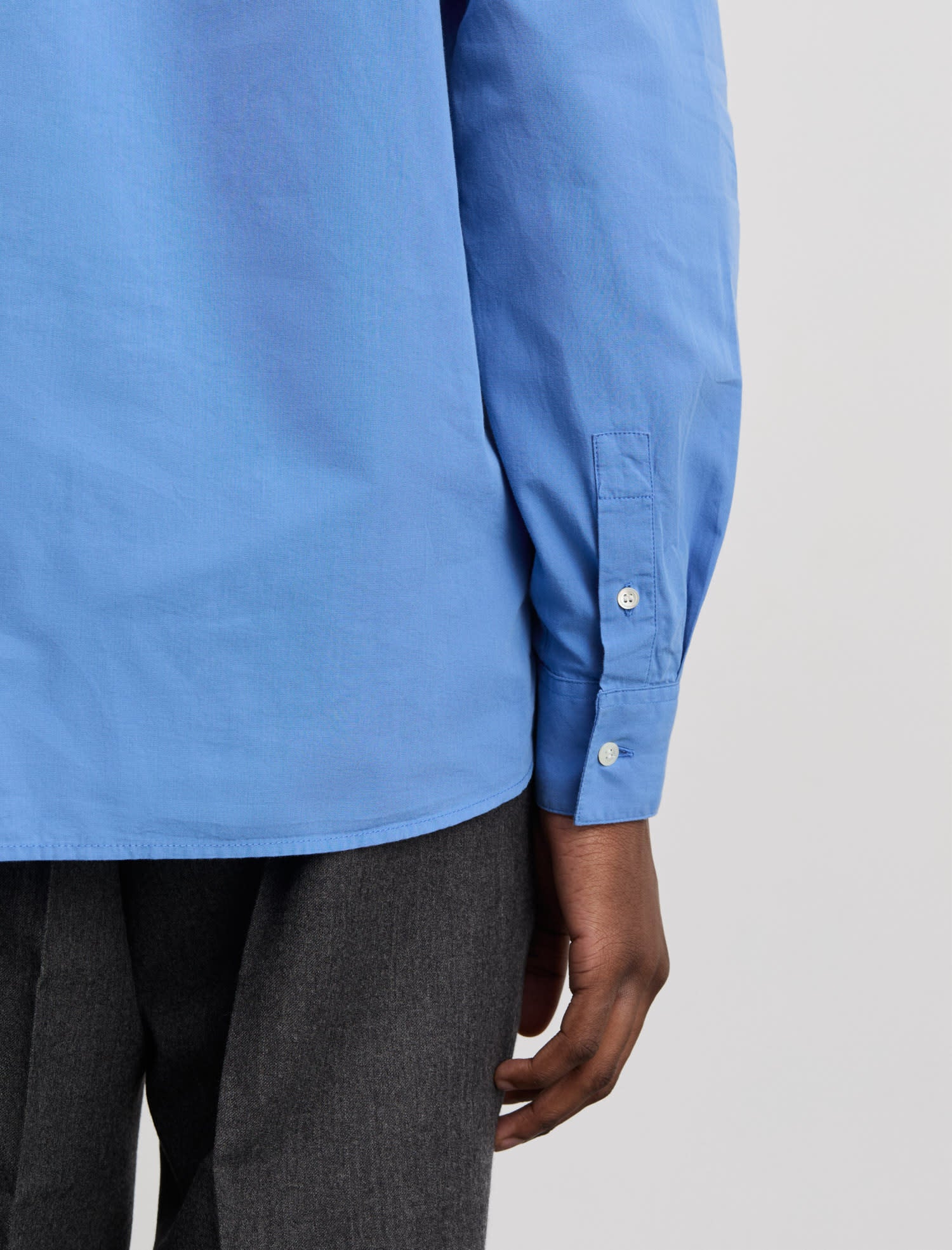 フォーマルな印象のポプリンシャツを、特別な日の装いから日常へ。オフィスはもちろん、プールパーティーやその合間の自転車移動まで、シーンを選ばず活躍します。GOTS認証のオーガニックコットンポプリンを使用し、エレガントな素材感とカジュアルな着こなしを両立させるレギュラーフィットに仕立てました。タックイン、ルーズに羽織る、ボタンを留める、開ける——自由なスタイルで楽しめます。