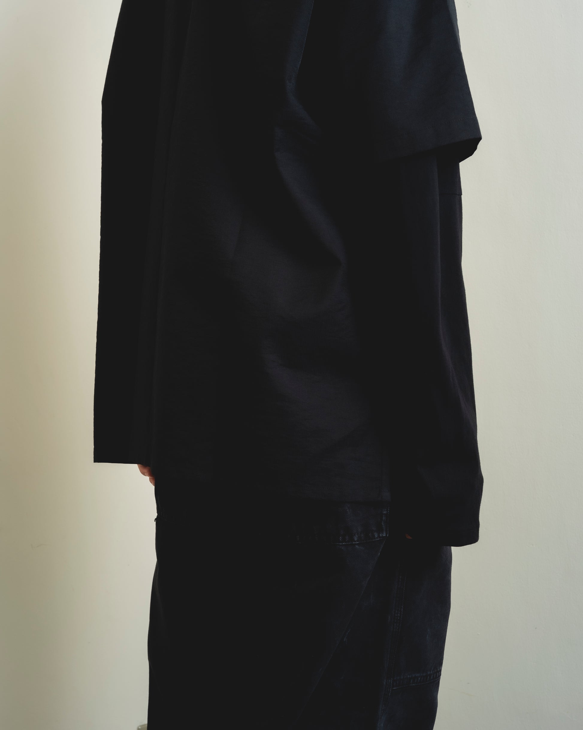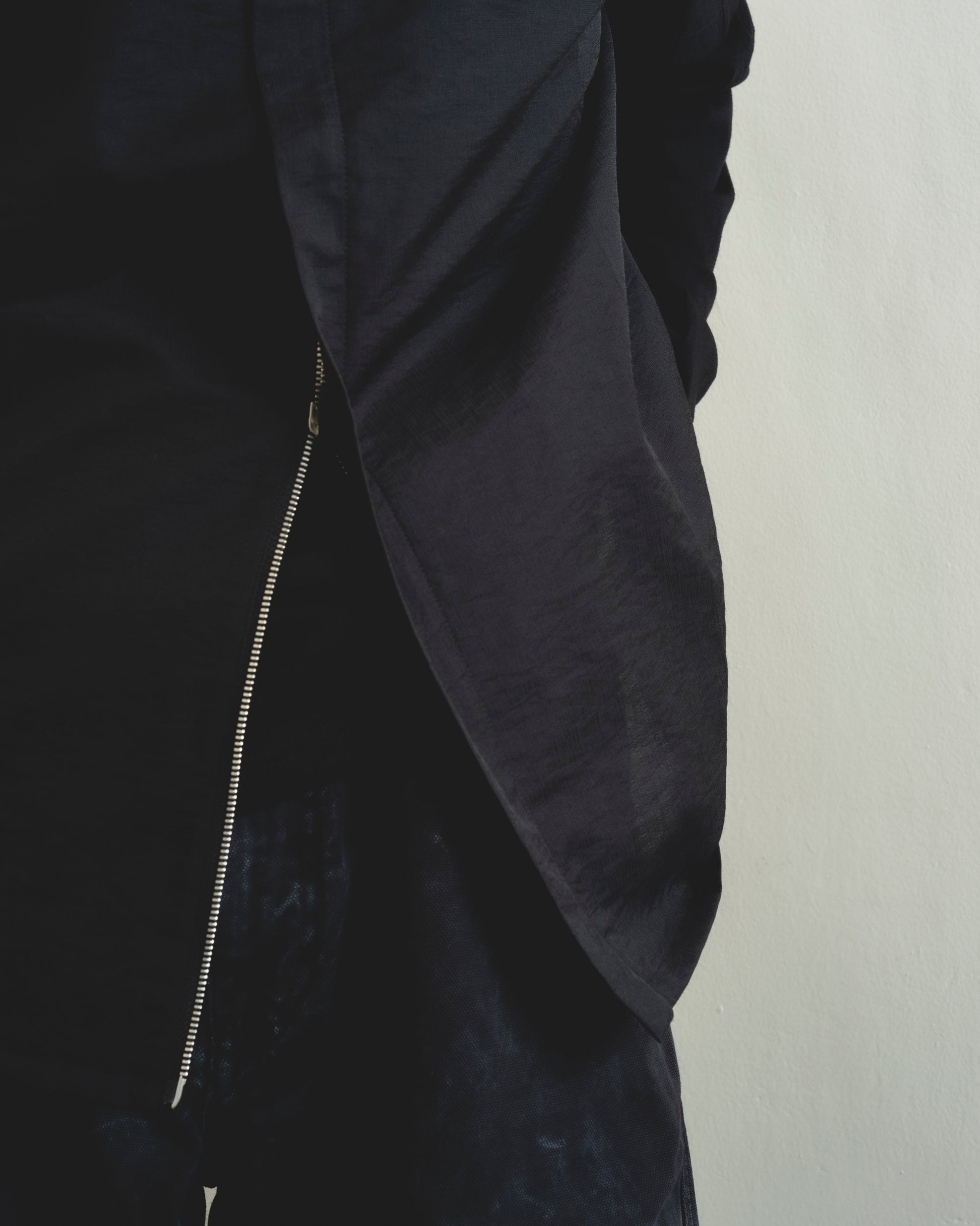 ・サイドシームを無くし、前身頃と後身頃の中心に移動させることで、前後の印象を逆転させ、非常にミニマルで洗練された印象に仕上げています。