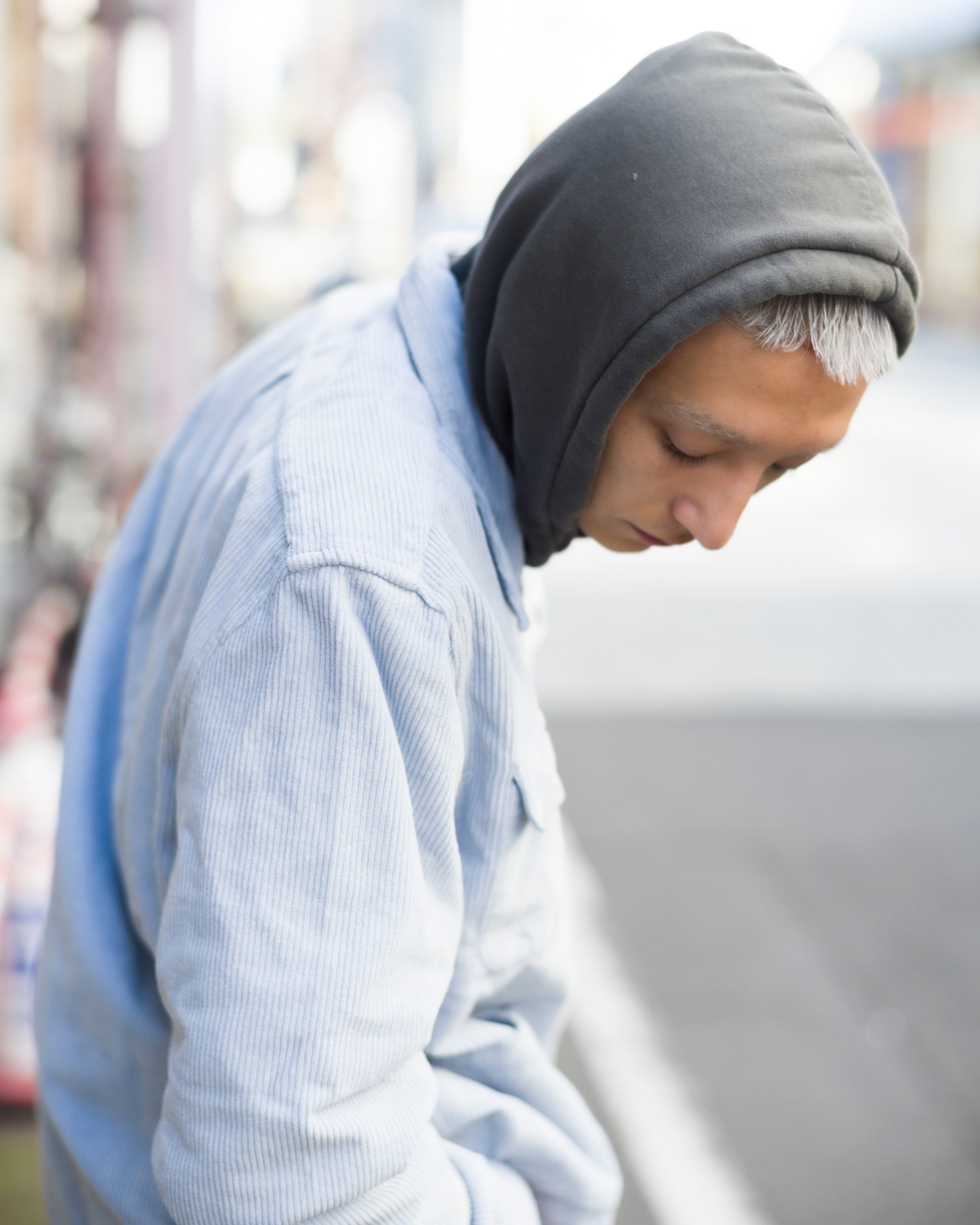 オーバーシャツジャケット。エンザイムウォッシュ加工を施した製品染め仕上げ。フロントはジップ仕様。フラップ付き胸ポケットと袖口にボタンを配置。パッチポケットと、小さなスクエア型の刺繍ロゴが特徴です。