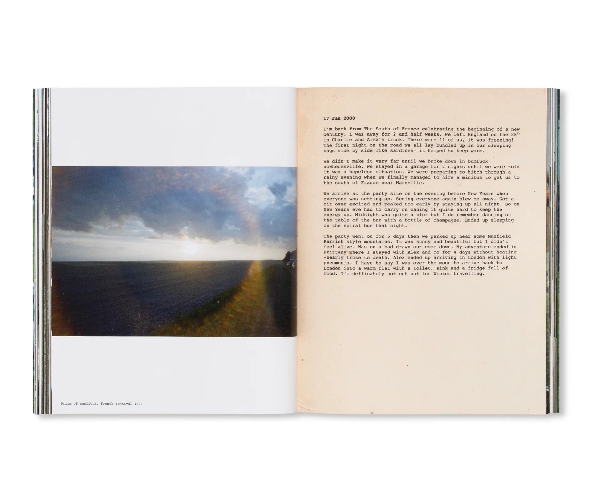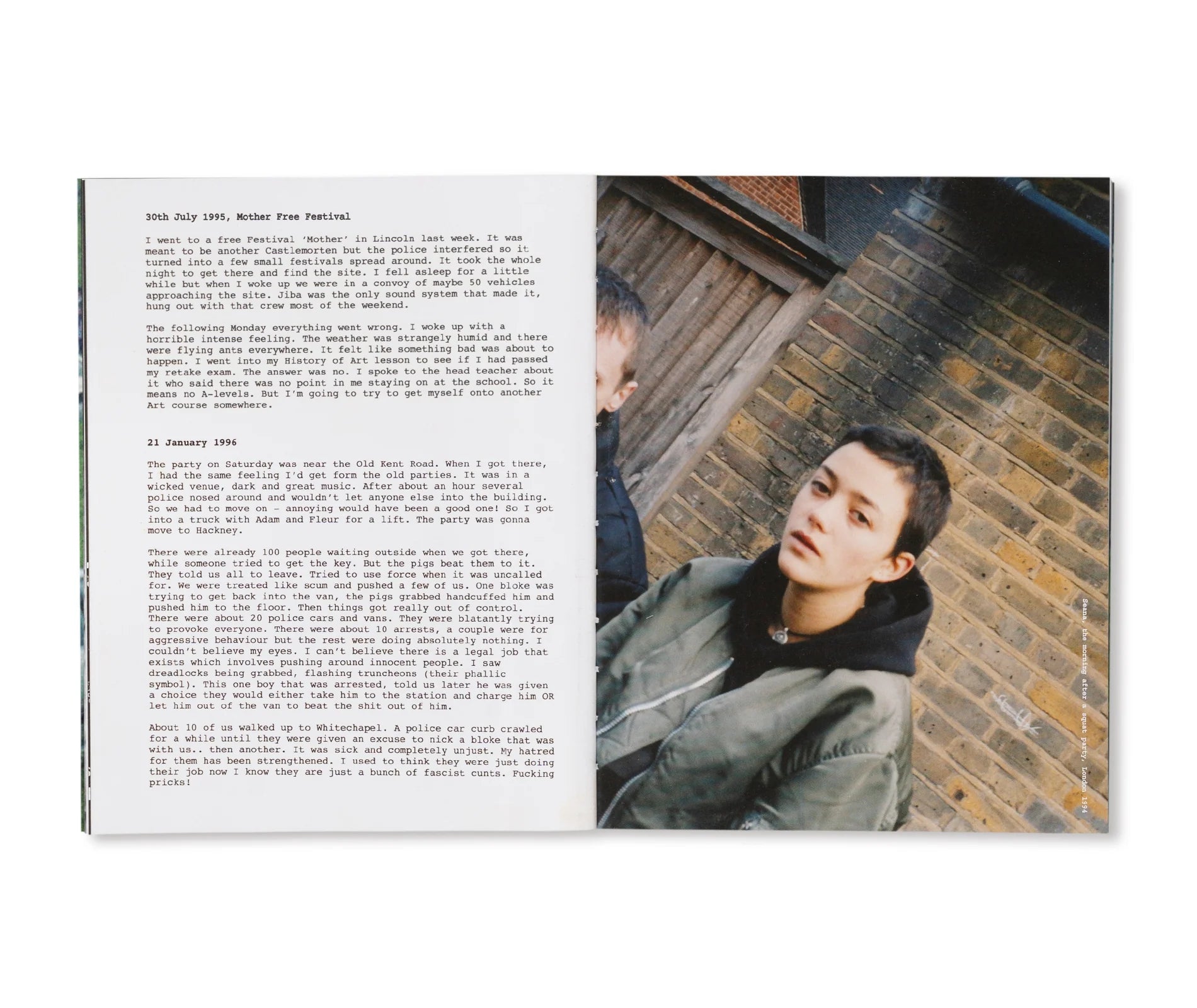 ロンドンを拠点に活動するアーティスト、シーナ・ギャビン(Seana Gavin)の作品集。2020年に初版が発売され、その後第3版まで刊行され続けた同作の再版本。より手に取りやすいコンパクトなサイズとなり、表紙には帯が巻かれ、中のページのレイアウトはより見やすく変更され、キャプションも追加された。 未成年だった作者がアンダーグラウンドのレイブシーンの信者だった1990年代へと時を戻し光を当てた一冊。1994年、イギリス政府は違法レイヴやその他の「反社会的」とされる行動を取り締まる「1994年刑事司法及び公共秩序法(Criminal Justice and Public Order Act 1994)」を導入した。テクノ・サウンドシステムの先駆者である「Spiral Tribe」らはイギリスを離れ、ヨーロッパへと飛び立ち、作者は彼らについていった。作者は旅を続け、日記を書き、写真を撮り、ほとんど二十年近い間、それらを隠し続けてきた。 本書は、ヨーロッパ中を行き来し、フリー・フェスティバルやレイヴ、大規模なピースフル・パーティーを広い野原や廃れた産業用建物で開催した「体制よ、くそったれ」のサウンド・システム運動のトラックやキャラバンにまつわる個人的で視覚的な歴史である。オルタナティブなライフスタイルについての本であり、野外風景の本であり、偉大でありながらもほとんど失われた自由を記録した写真集である。そうした自由が、2023年には、携帯電話やソーシャルメディア、"Zoom" 通話から逃れられる自由のように、そして活動の自由のように思える。旅、人々との出会い、ダンスを体験し、そこから学ぶために時間を拡張させた本なのだ。