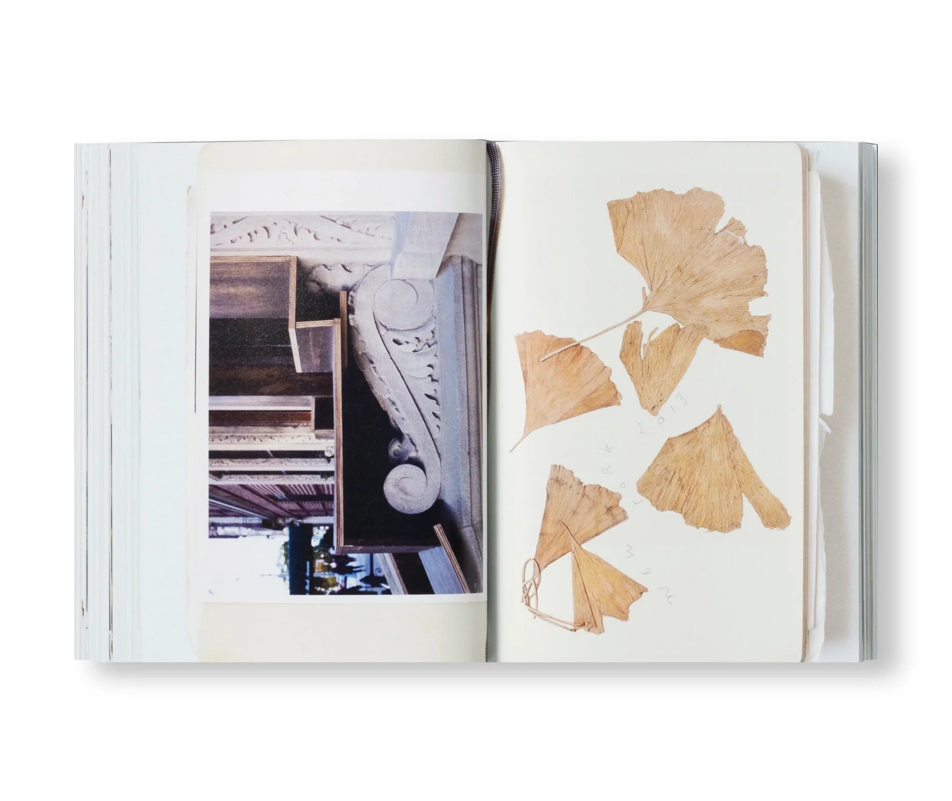 この記録は公式の作品集ではないが、のちに実際の出版物を選ぶ際の決断のための準備の一つでもあり、慎重に集められ、豊かに飾られている。それぞれ写真だけでなく、ドローイングやメモ、少しの日々の断片で埋め尽くされており、それぞれが独特の美学を持っている。その美学は、シャフランの直感的な整理のルールと作業プロセス全体に特徴的な、視覚的なシンプルさと明確さだけでなく、素材感のある手作業に対する気軽さを兼ね備えたものなのである。」