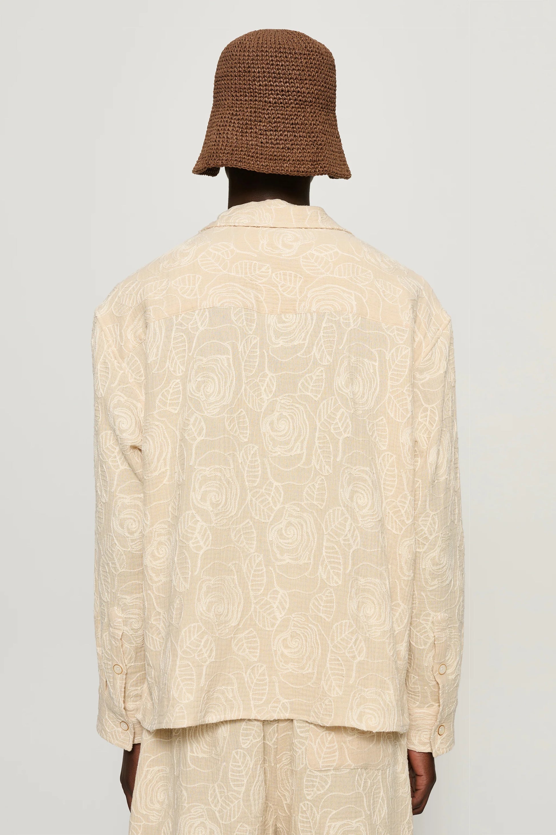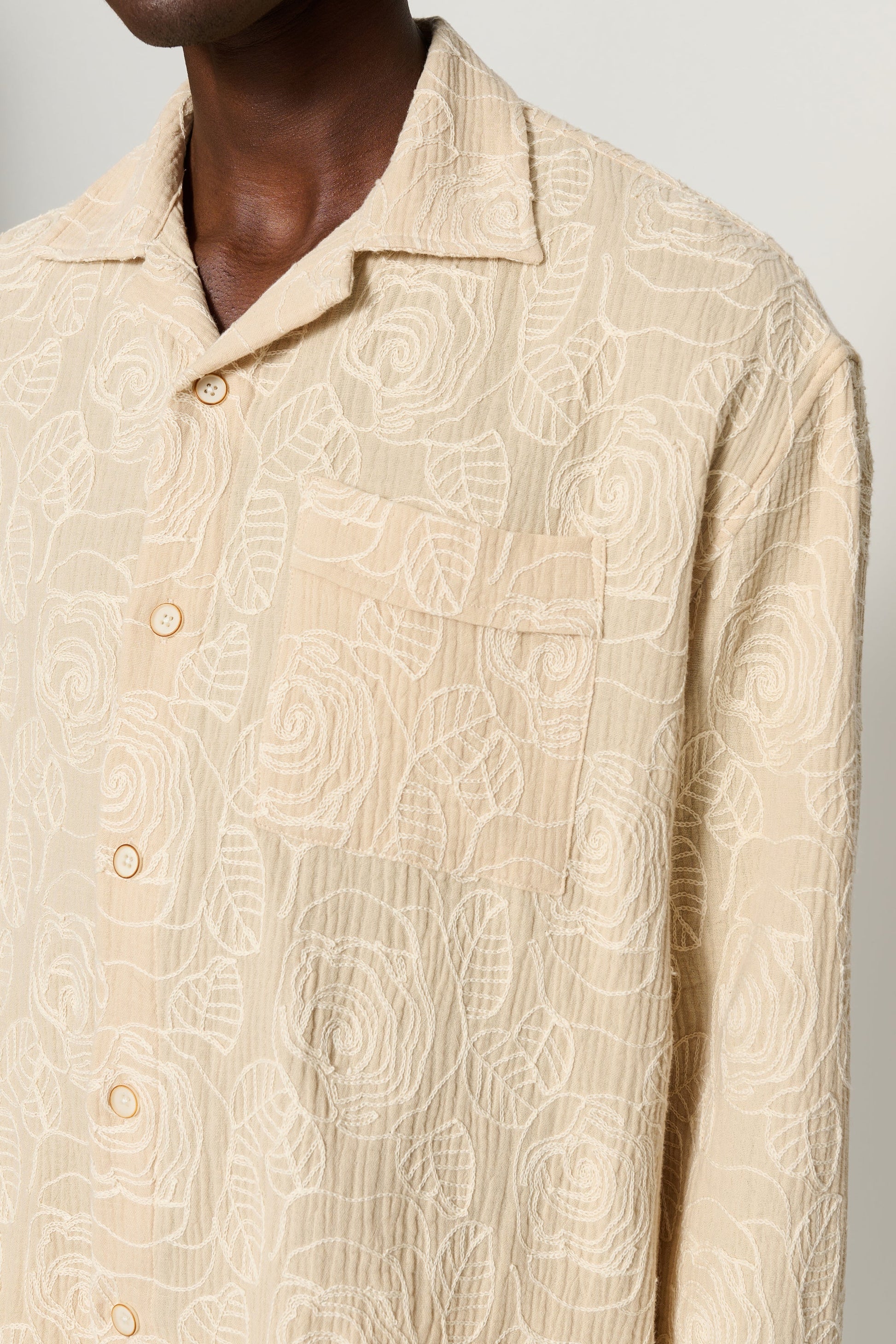 柔らかなコットン混素材にフローラル刺繍を施したリラックスフィットのシャツ。
