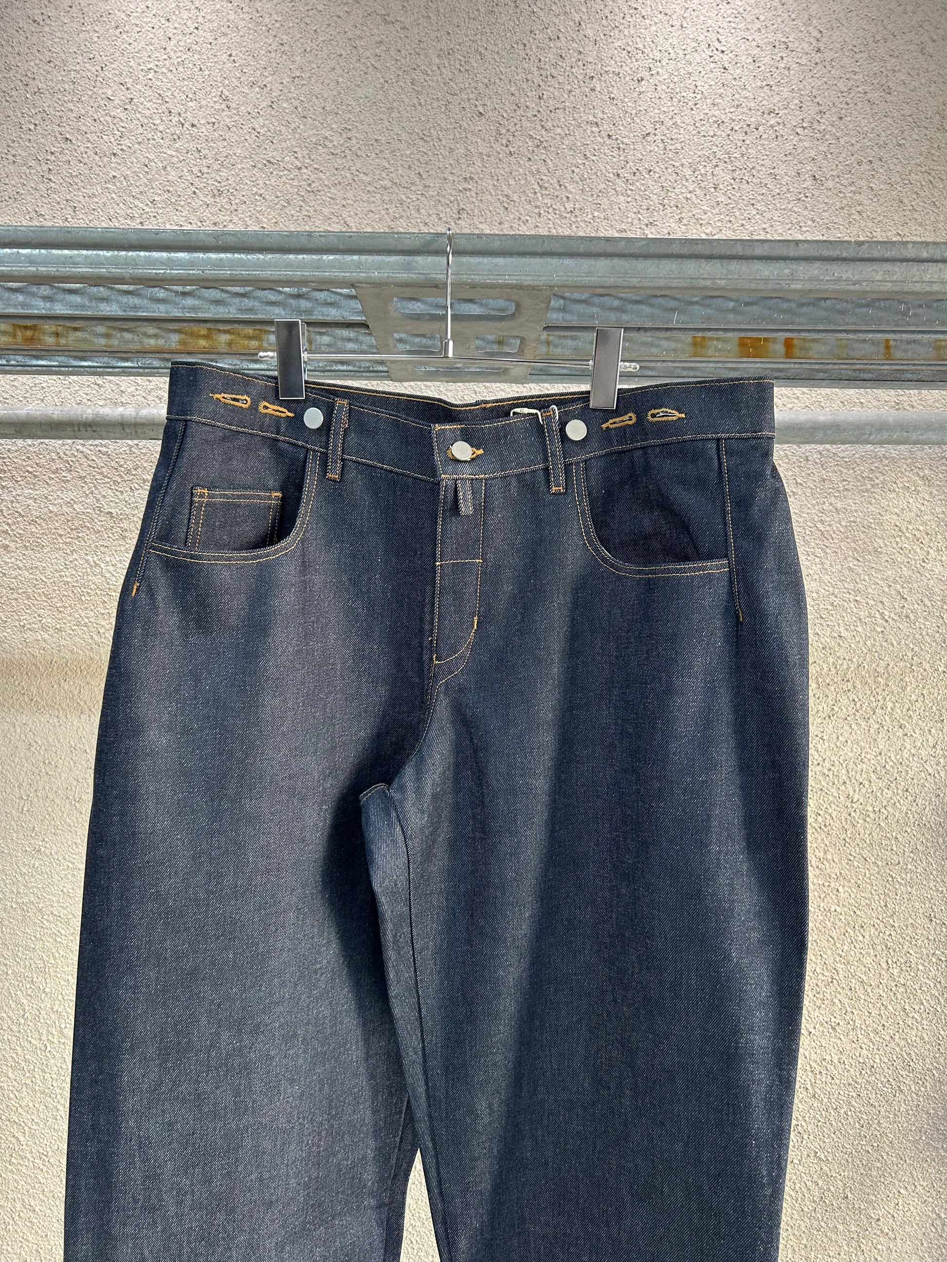 15.5ozのデニム生地を使用し、素材には岡山産のデッドストックのリジッドデニムを採用しています。