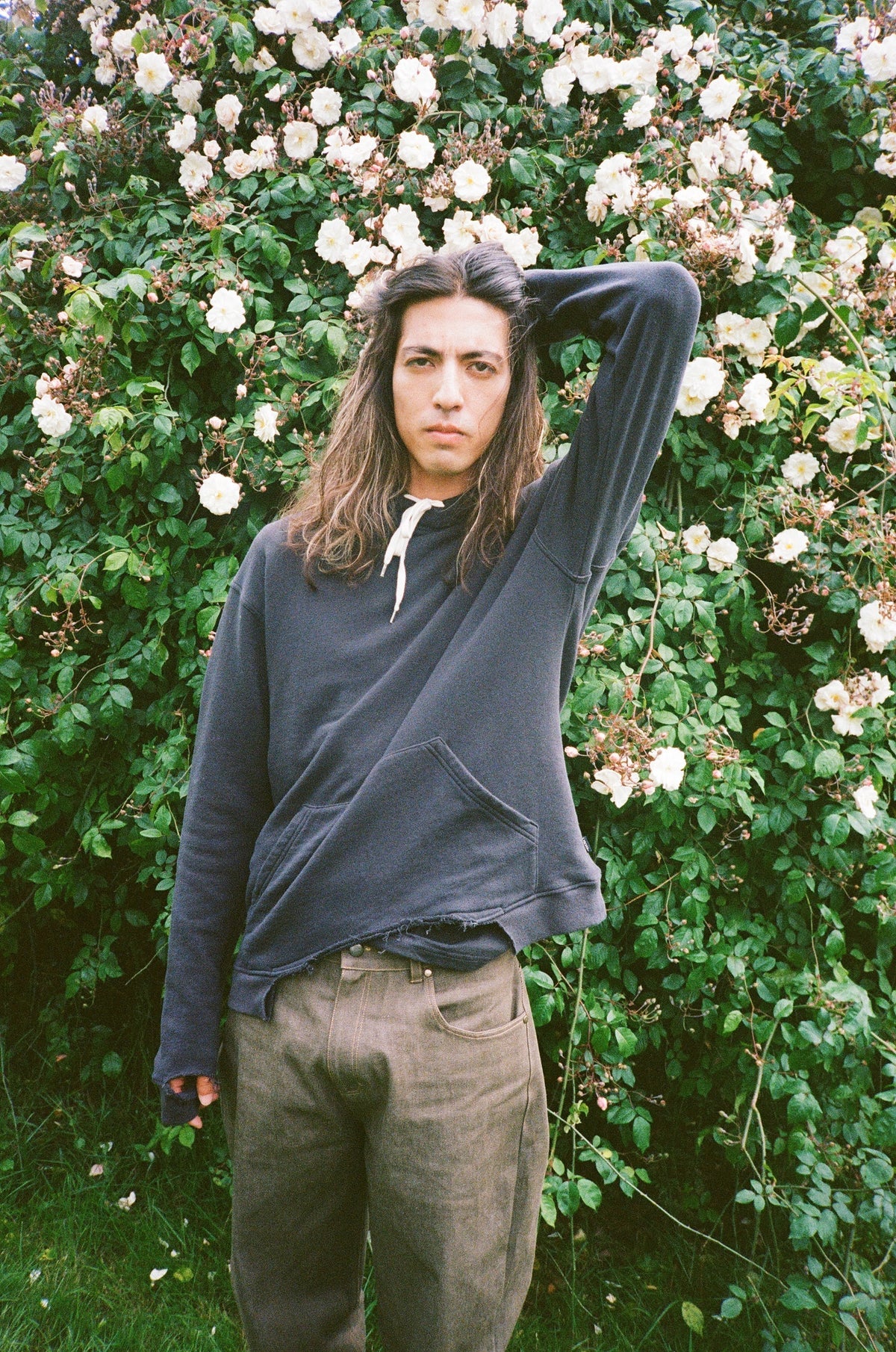 フロントの裾は断ち切り仕様で、あえてラフな表情に仕上げています。