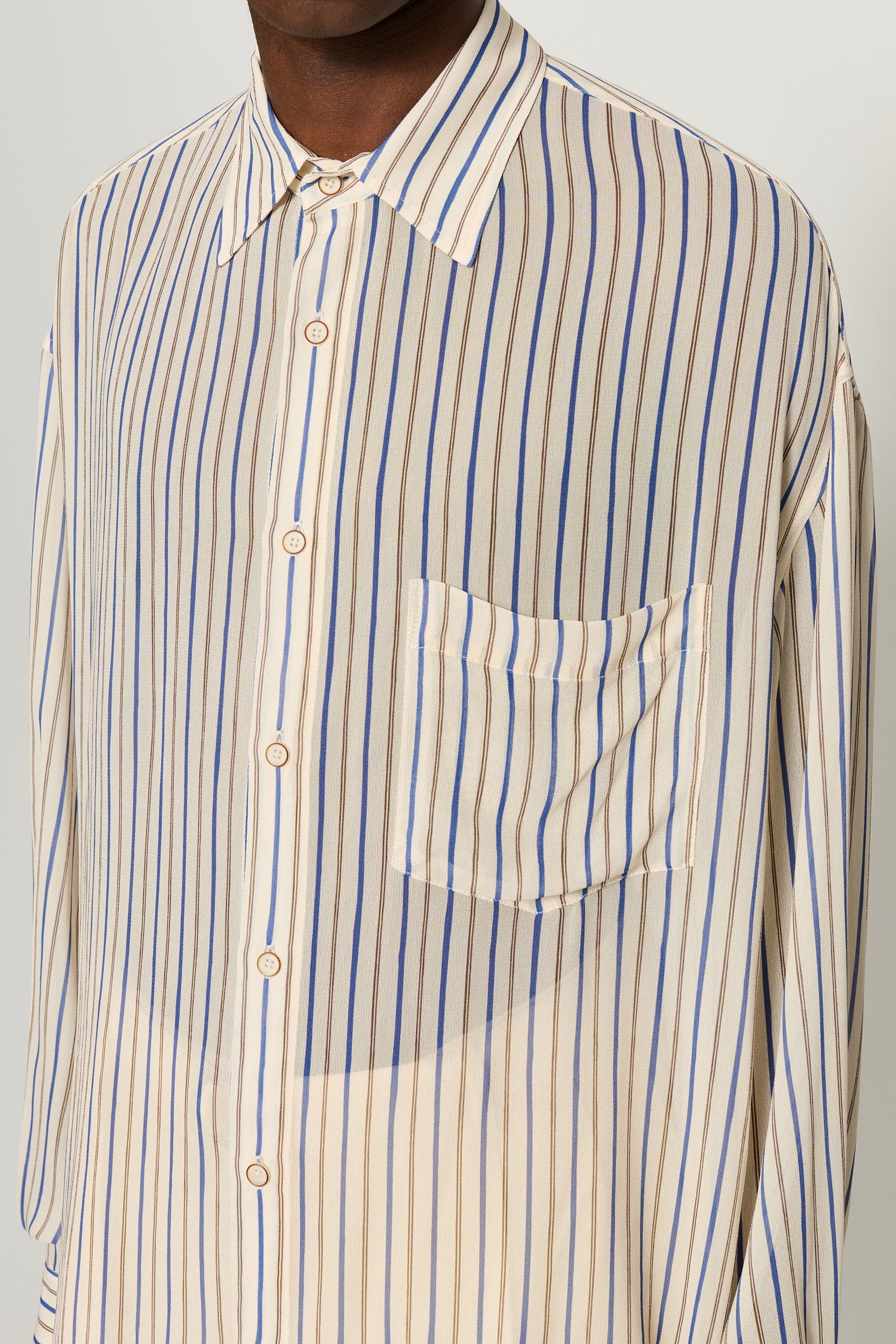 軽やかで透け感のあるビスコースジョーゼットを使用し、オリジナルのストライププリントを施しました。
