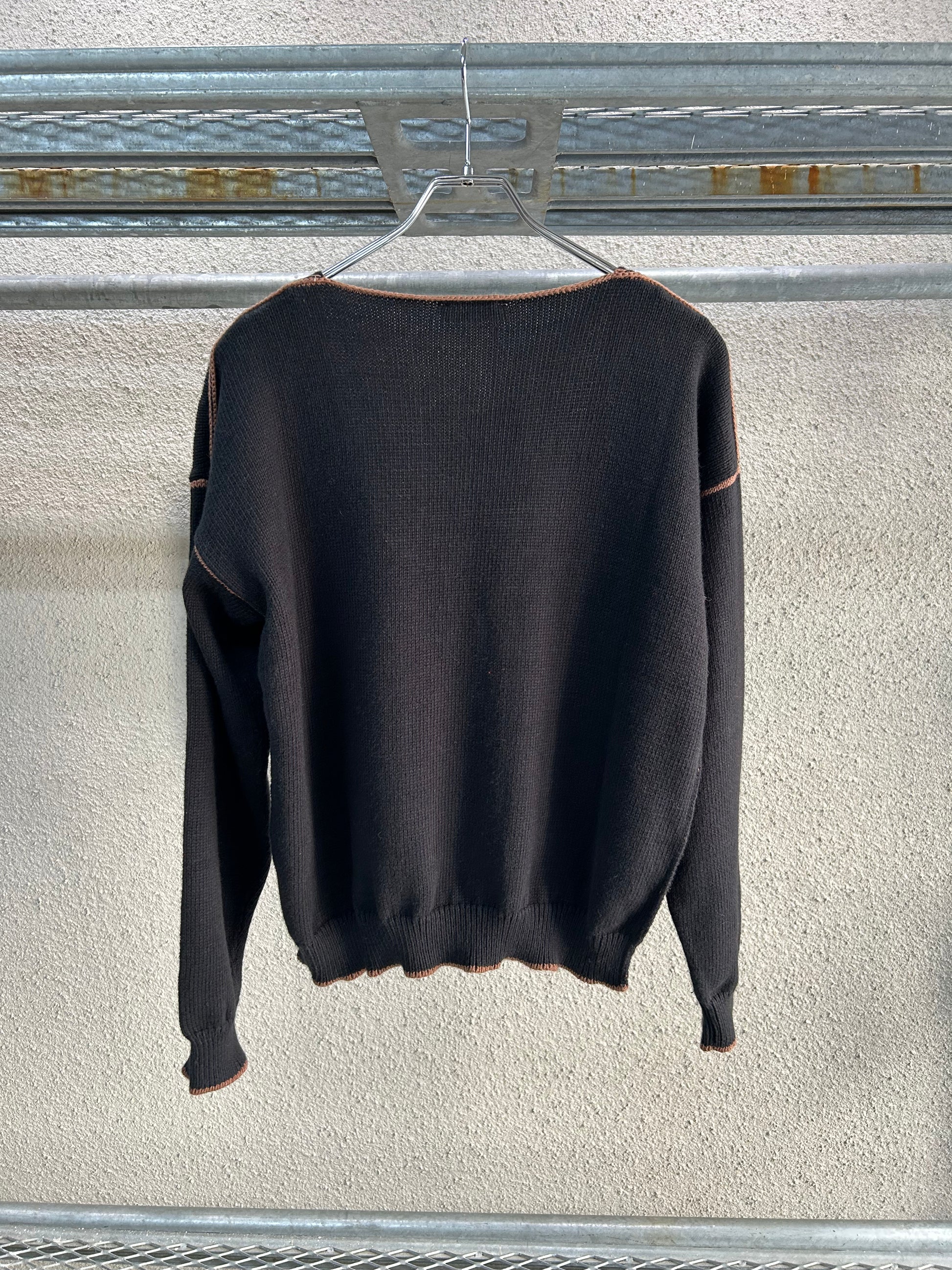 深く開いたVネックが特徴的なデザインで、デザイナーのMariaの母親が長年愛用していた、マルタン・マルジェラ期のエルメスのヴァルーズニットから着想を得て制作されています。